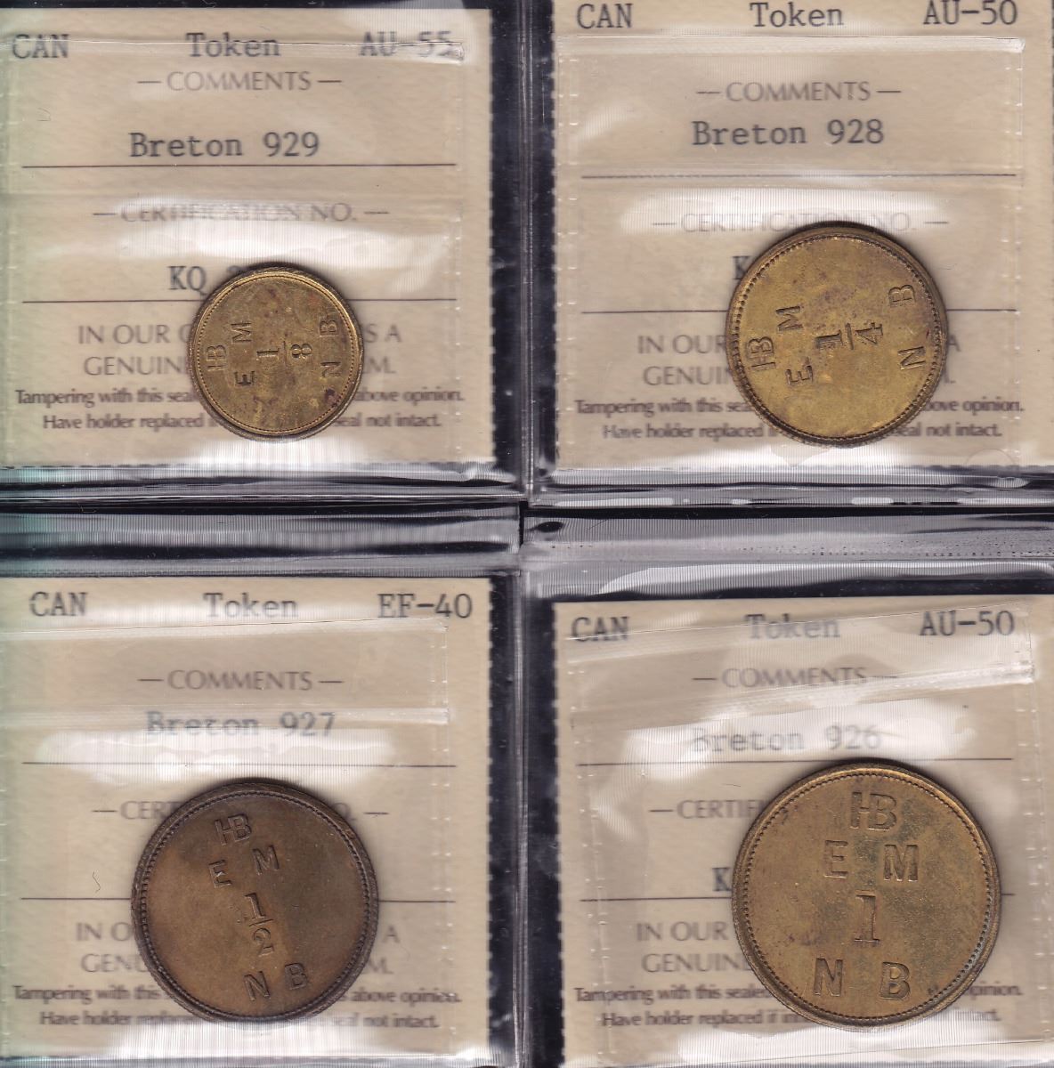 Fur Trade Tokens - Complete set of Hudson Bay Tokens - ICCS Graded Lot of 4