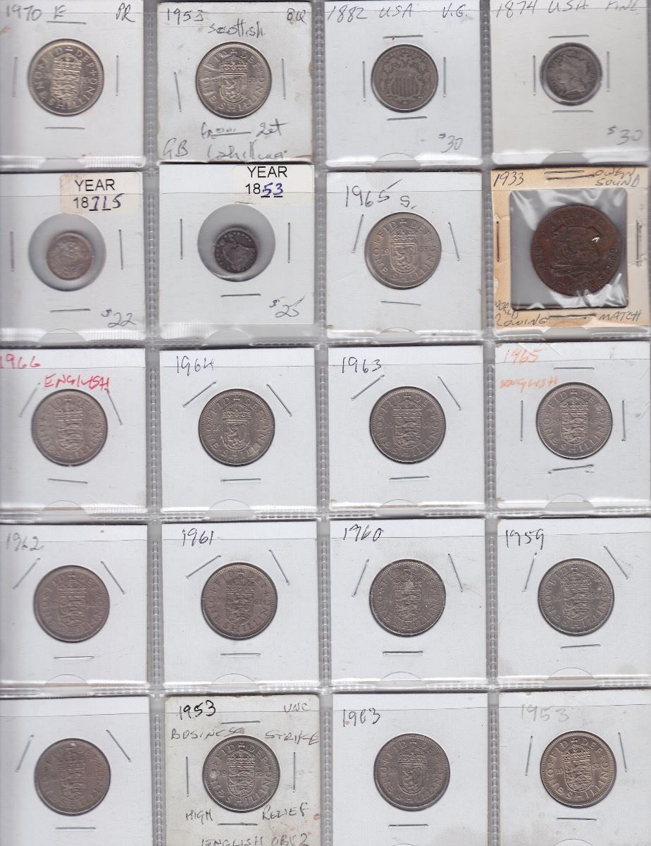 GBA Treasure Chest - Mostly world coins focused on Great Britain but also includes: Owen Sound 1933 Plowing Match medal, large French medal, 4 USA coins - 1853 & 1874 silver three cents, 1871S half dime, 1882 five cents. 76 Pcs.