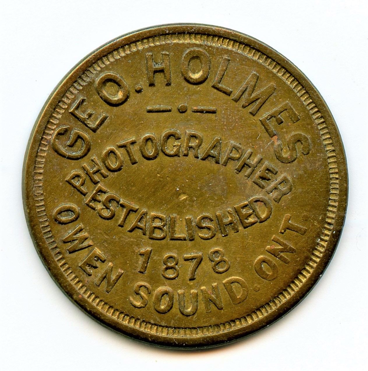 Geo. Holmes, Owen Sound, Ontario, Numismatist Token.