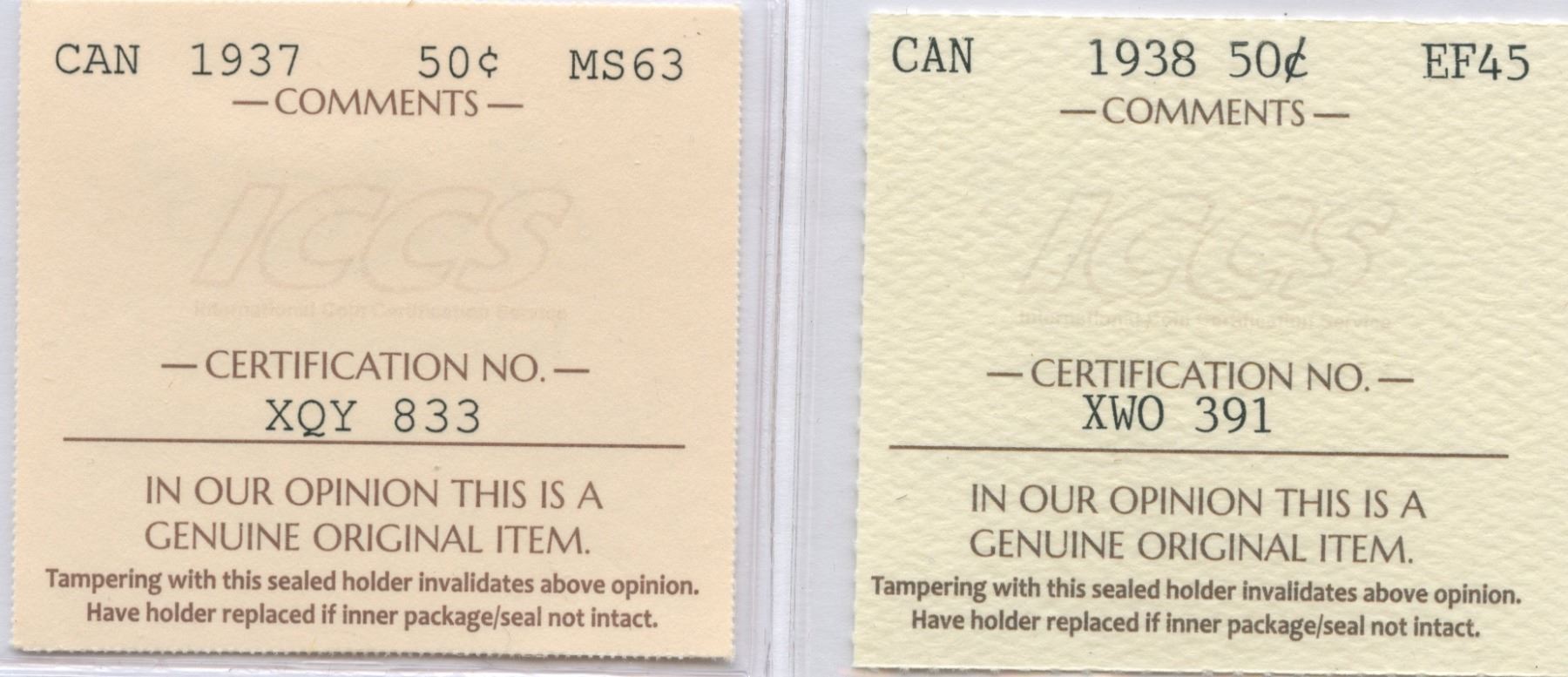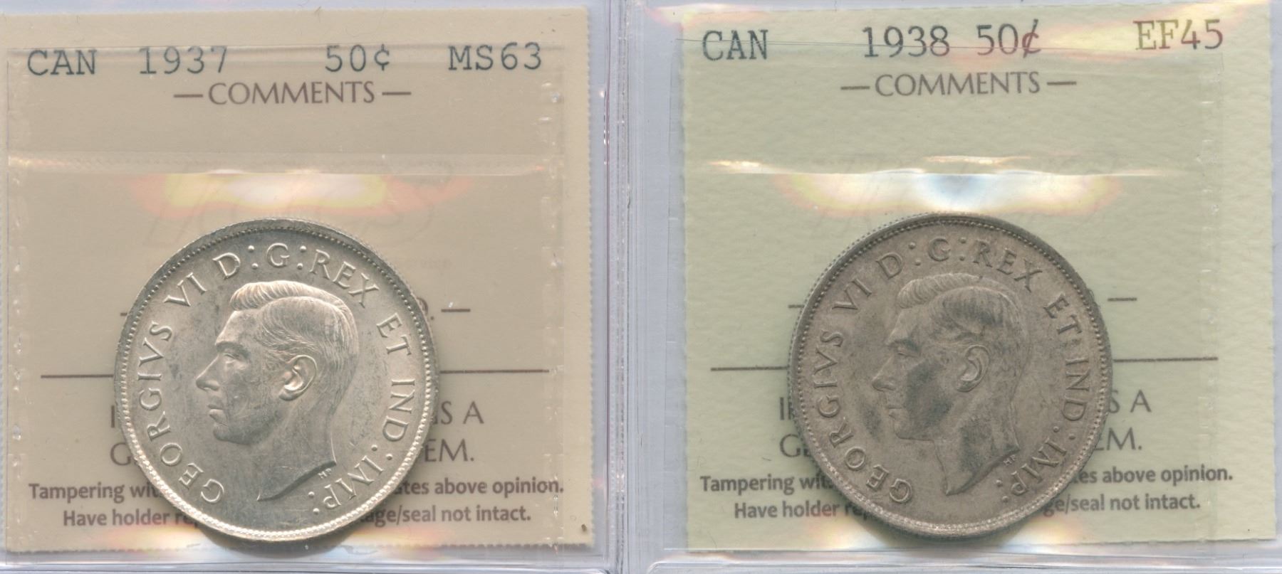 1937 ICCS MS63; Nice bright coin || 1938 ICCS EF45. 2 Pcs.