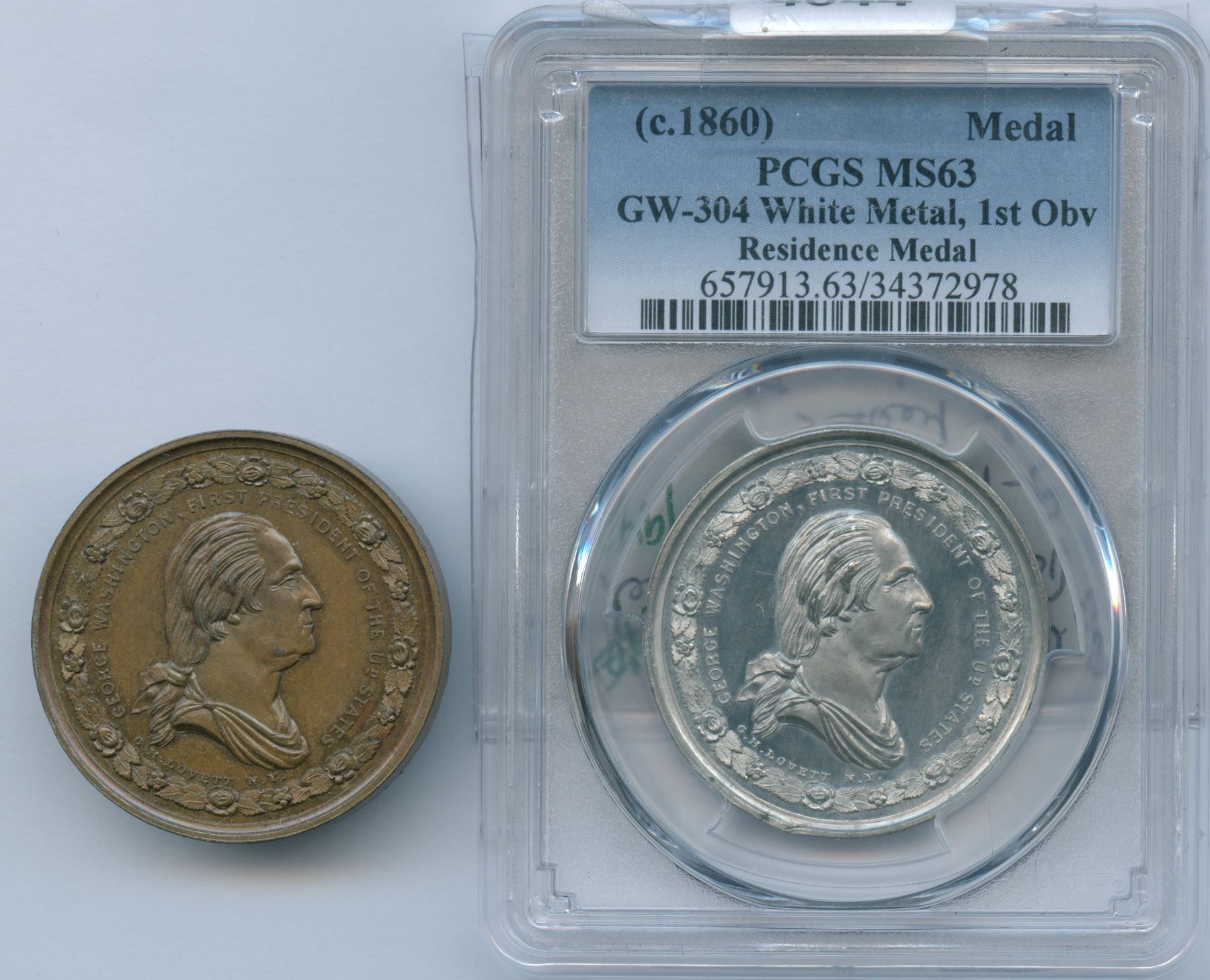In copper (raw) and white metal (PCGS MS63), 35mm, Unc's. GW-304, Baker 113A. 2 pcs.