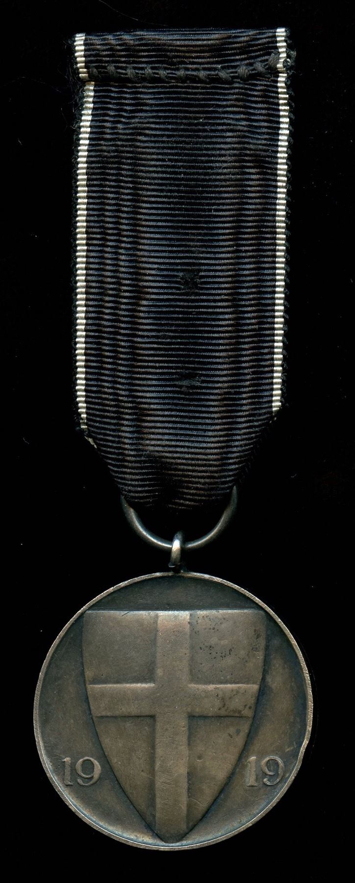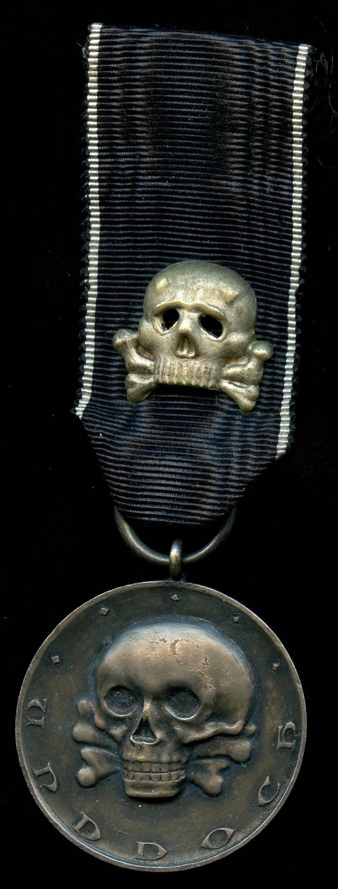 One of many Freikorps, the Iron Division was raised on January 18, 1919 in Wainoden by an experienced German officer Major Josef Bischoff out of remnants of German 8th Army, Iron Brigade (Eiserne Brigade) being another Freikorps unit and numerous volunteers. On October 06, 1919 it was absorbed by the West Russian Volunteer Army and disbanded on December 31, 1919. Toten copf. on original ribbon.