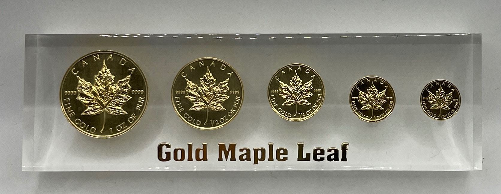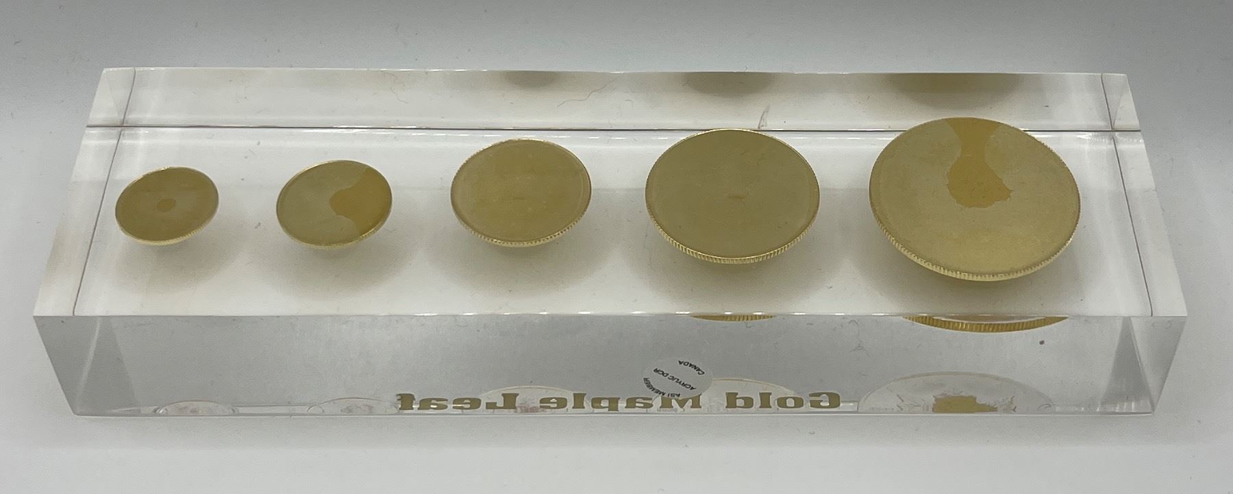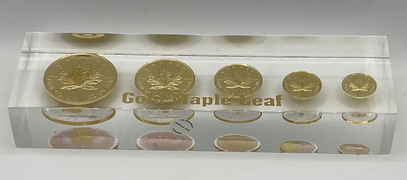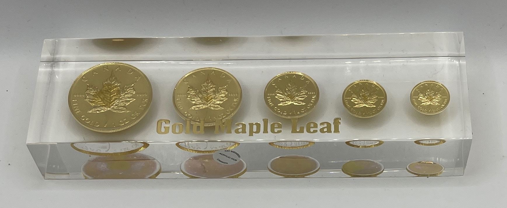 Gold Maple Leaf Uniface Lucite Replica Set from the Royal Canadian Mint