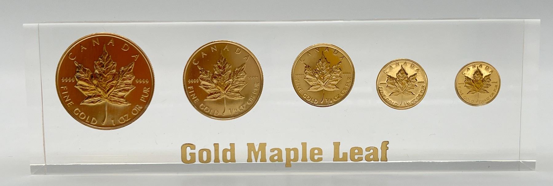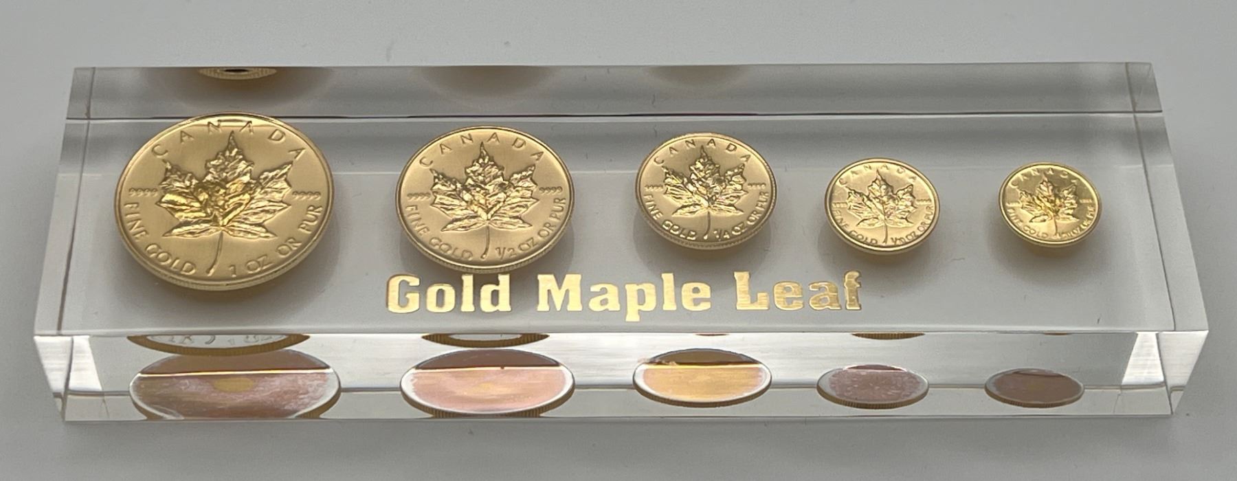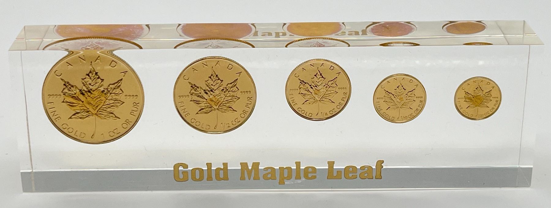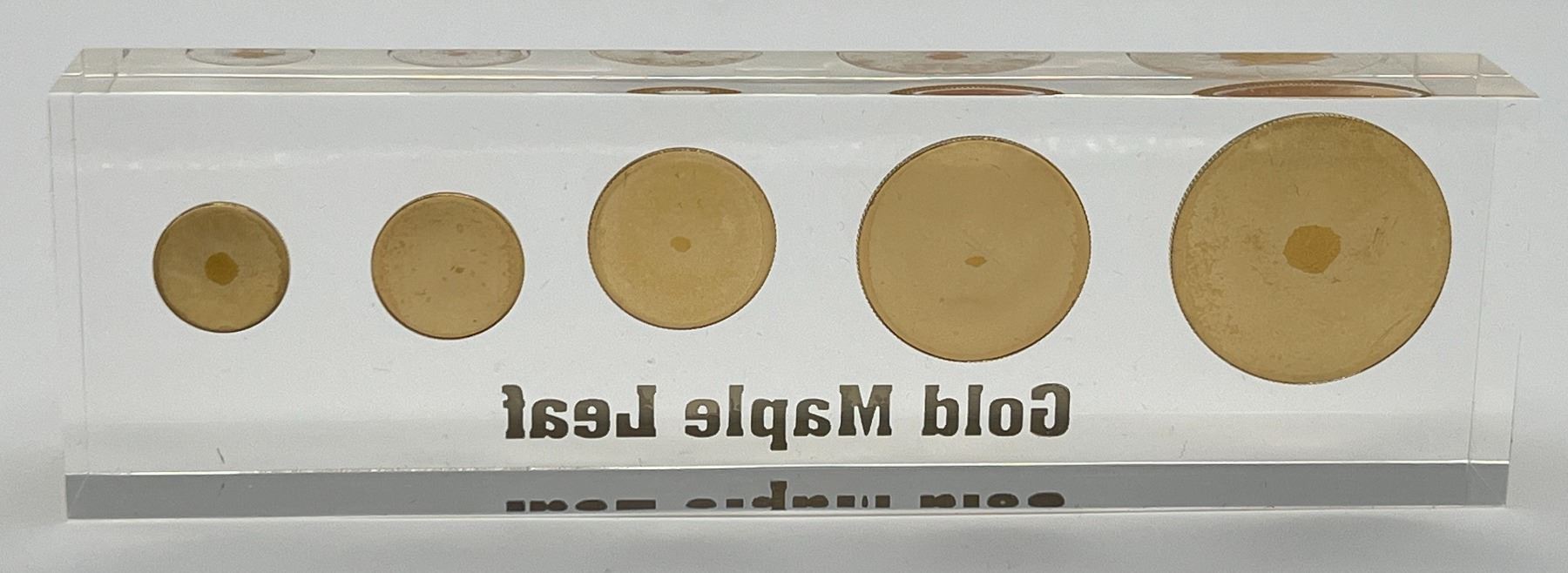 Gold Maple Leaf Uniface Lucite Replica Set from the Royal Canadian Mint