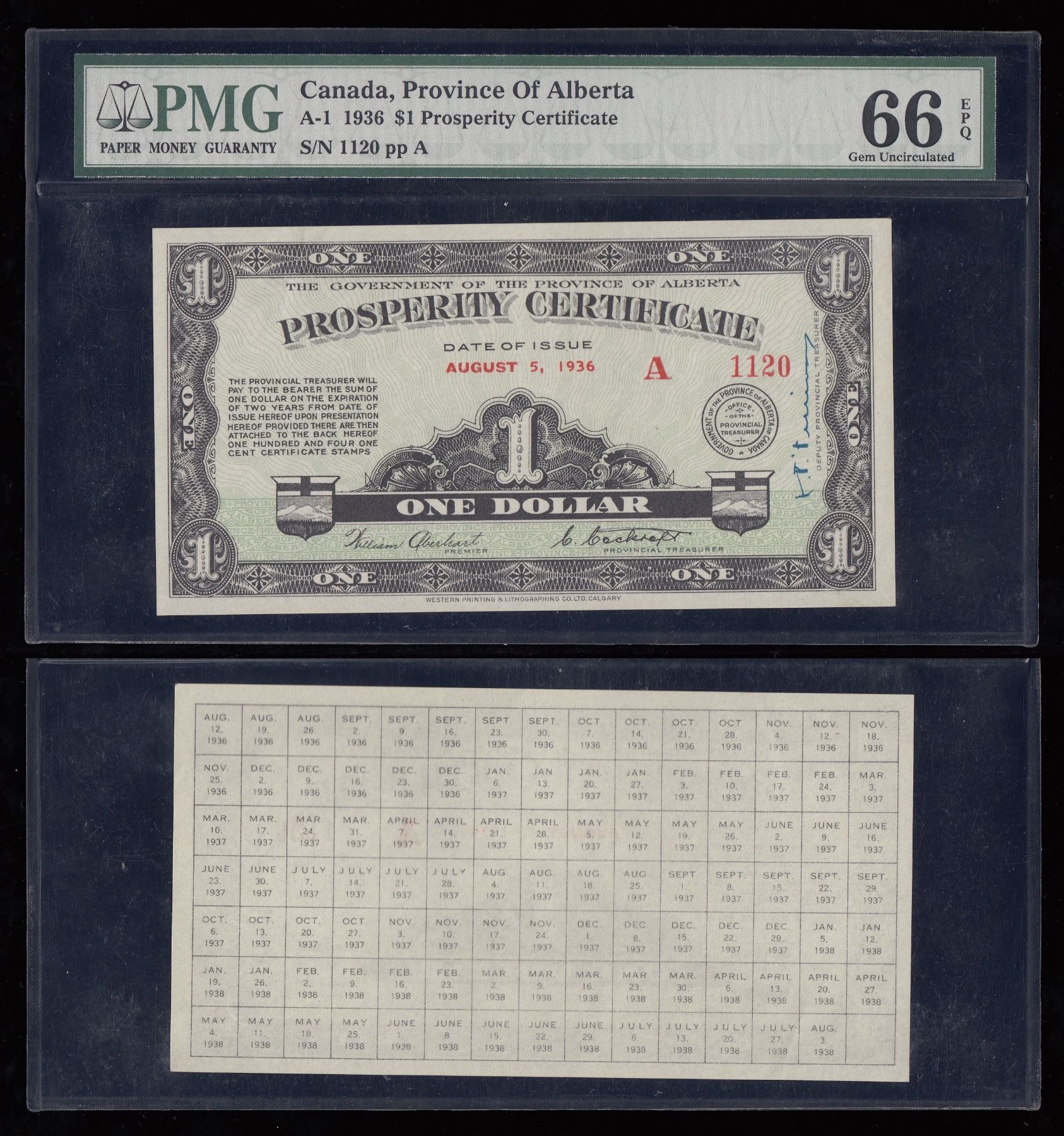 CH A-1, PMG Gem Unc 66 EPQ. S/N: A1120.