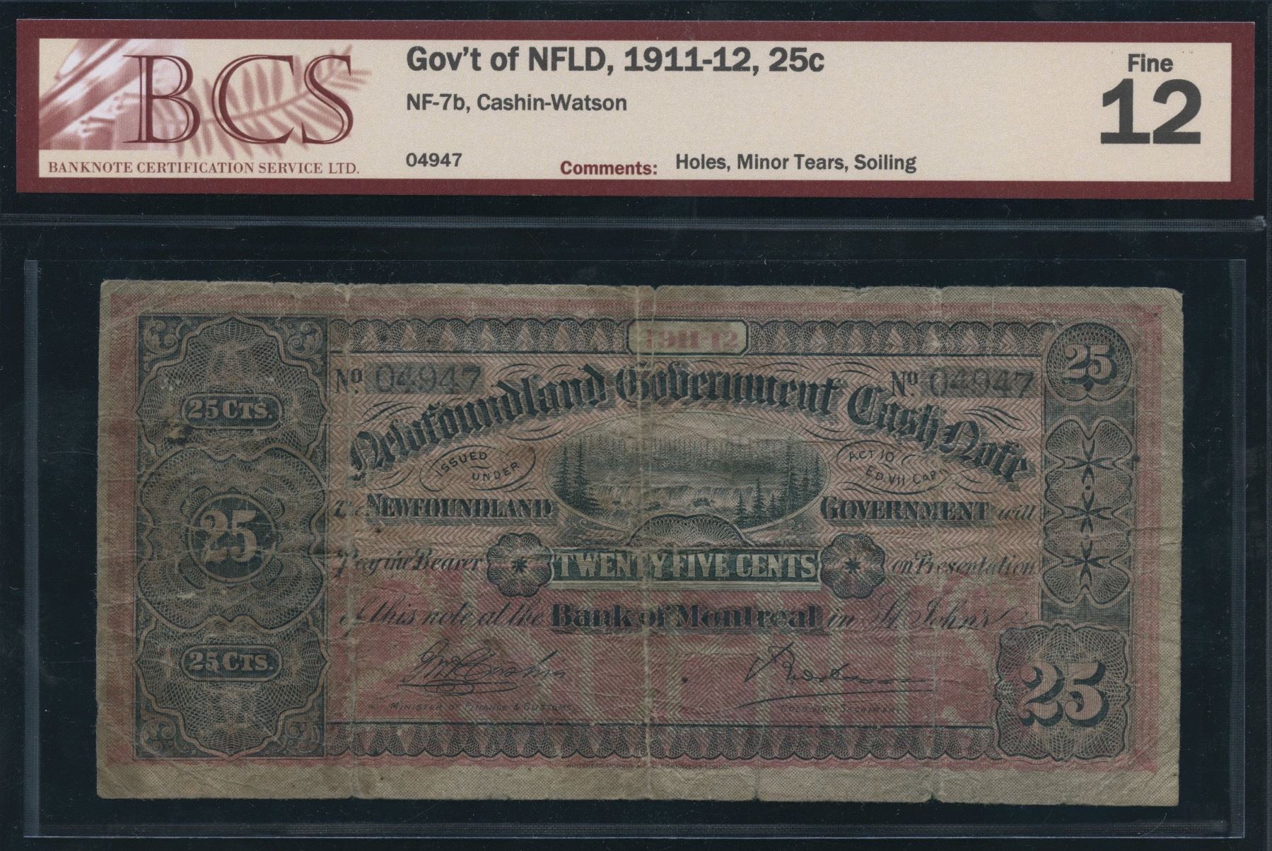 NF-7b. BCS Fine 12, holes, minor tears, soiling, Cashin-Watson. S/N:04947.