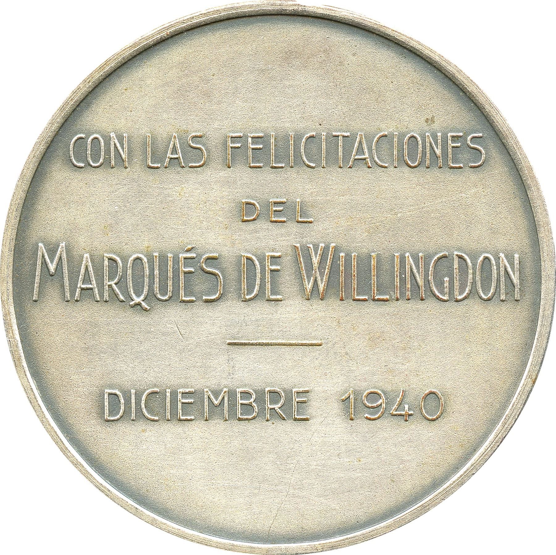Willingdon, retired Governor General of Canada, Uruguay friendship medal, Wm, 50 mm, 51.6 gms of silver plated copper. Of interest to Governor General of Canada collectors. From the Geoffrey Bell Collection.