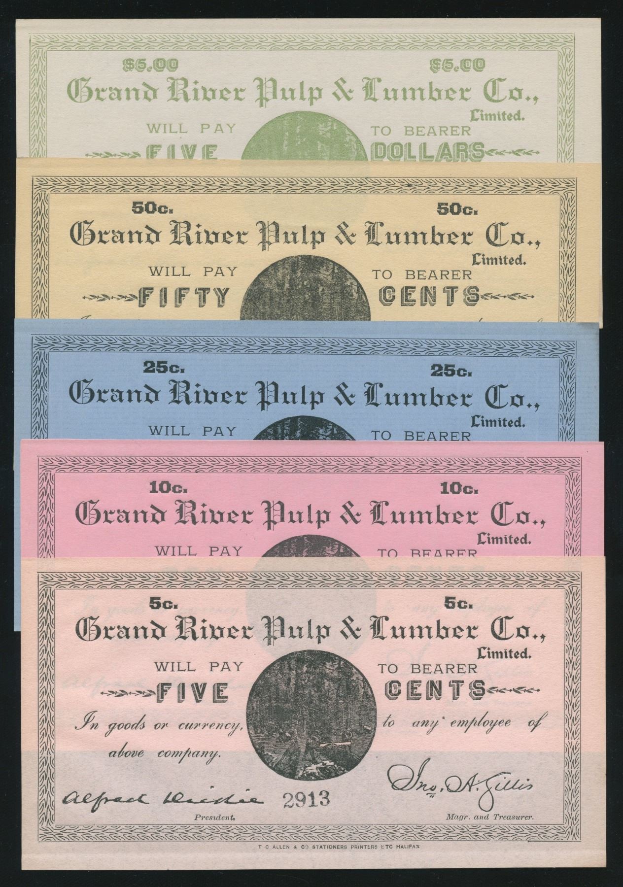 Set includes: 5 cents, S/N: 2913. 10 cents, S/N: 1132. 25 cents, S/N: 1520. 50 cents, S/N: 32. $5, S/N: 435. All Unc's.