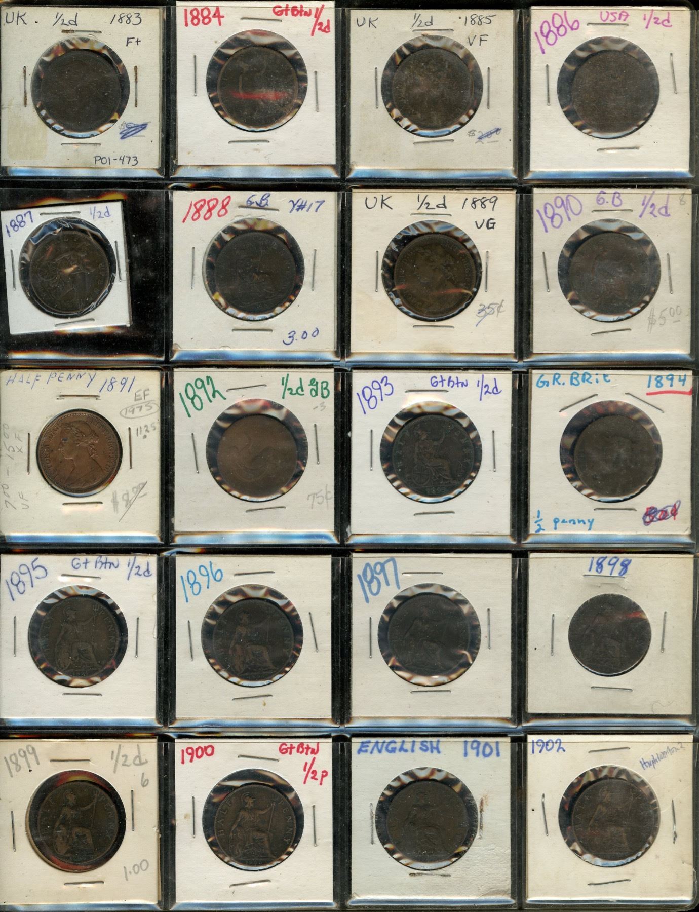 Lot mainly includes farthing and lower denominations. A very nice group that would be perfect with the lots below. 385 Pcs.