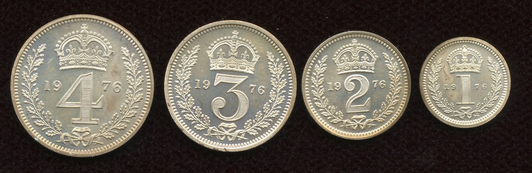 AR Maundy Set. Dated 1976. All coins (4): Bare head left / Crowned denomination mark within wreath. EF. 4 Pcs.