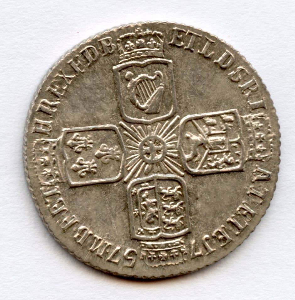 AR Sixpence (26mm, 6.02g). London mint. Dated 1758. GEORGIVS · II · DEI · GRATIA ·, laureate, draped, and armored bust left · M · B · F · ET · H · REX · F · D · B · ET · L · D · S · R · I · A · T · E 17 58, crowned cruciform coats-of-arms around rayed Garter Star. ESC 1213; SCBC 3704. EF.