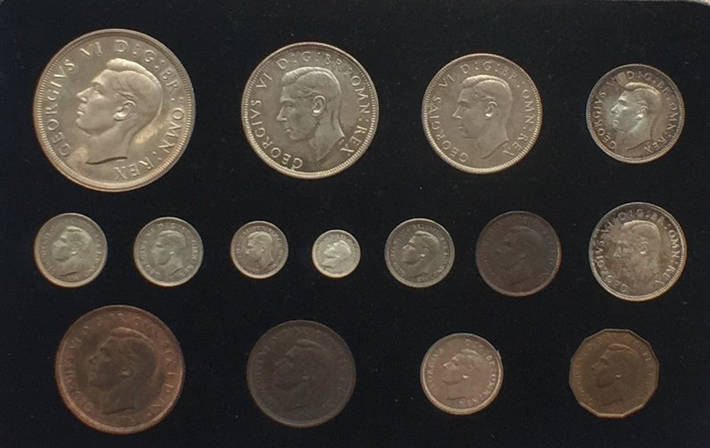 Great Britain - George VI 1937, 15 Coin Specimen Set. - In nice original case. Copper darkened, silver lightly toned.