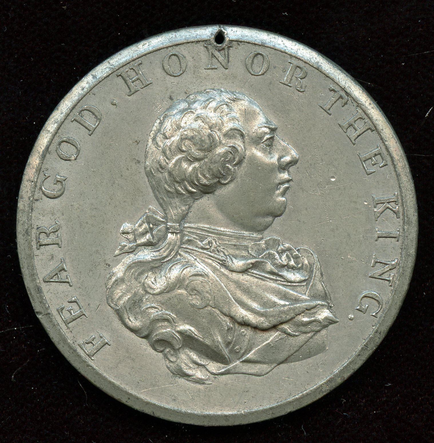 Great Britain Historical Medal - GEORGE III, Chester King and Constitution Club, 1817, in white metal (45mm), with unofficial pierced hole at top with loop for suspension.
