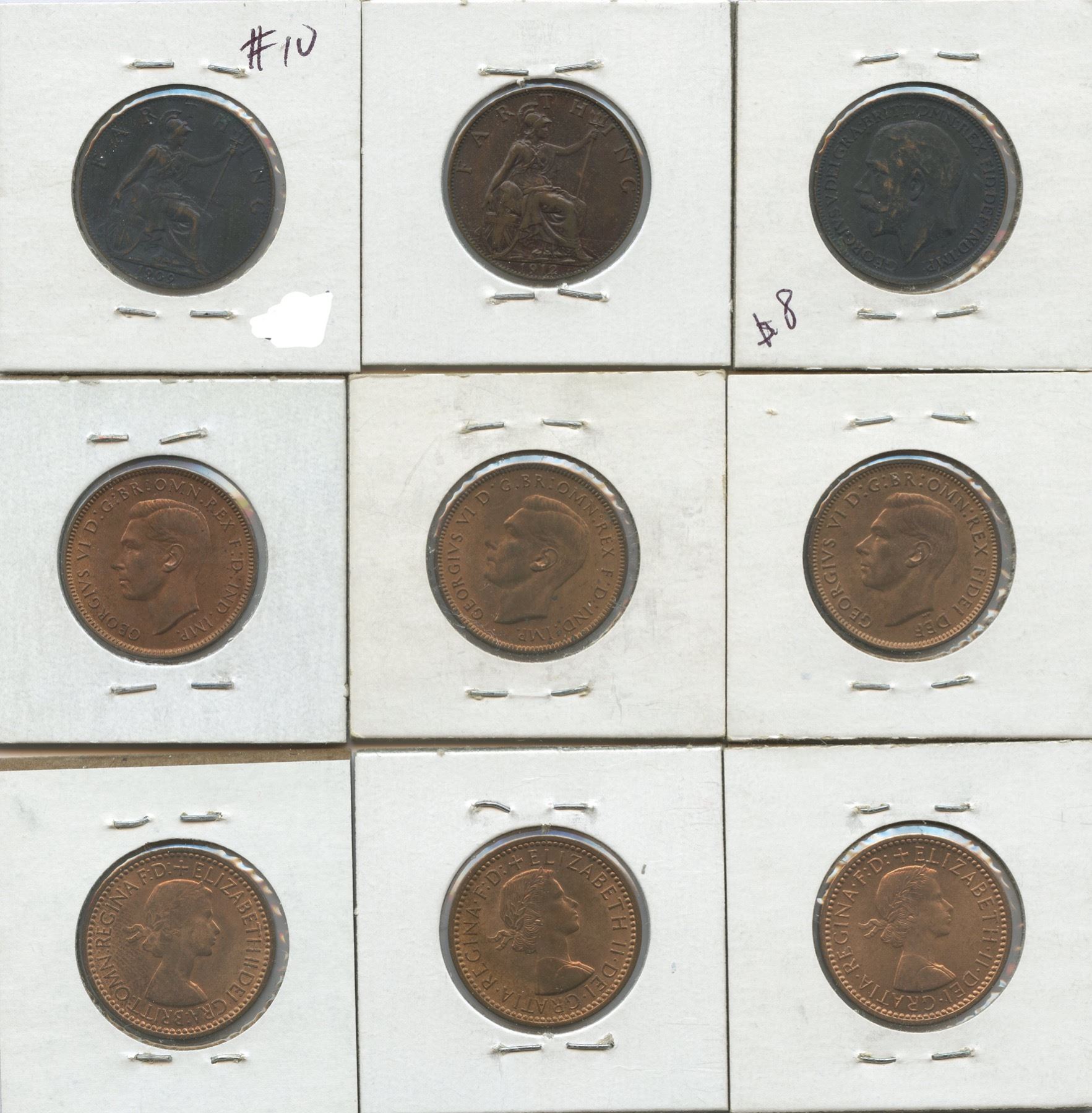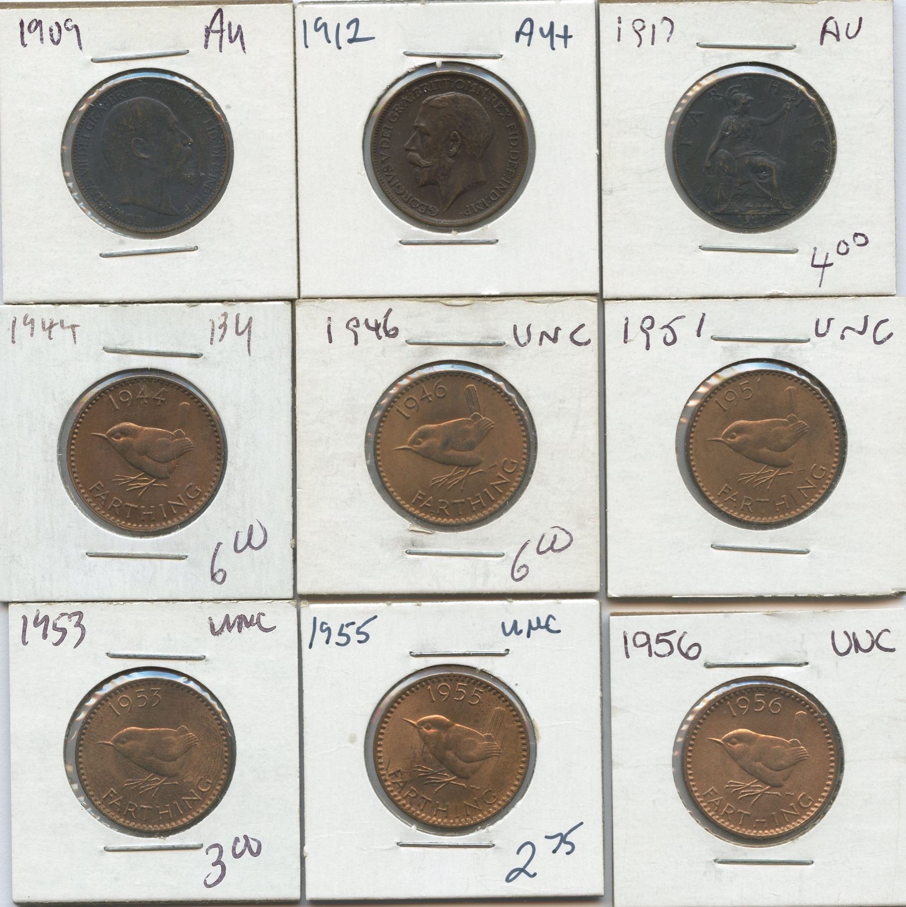 Dates include: 1909, 1912, 1917, 1944, 1946, 1951, 1953, 1955, 1956. 9 pcs.