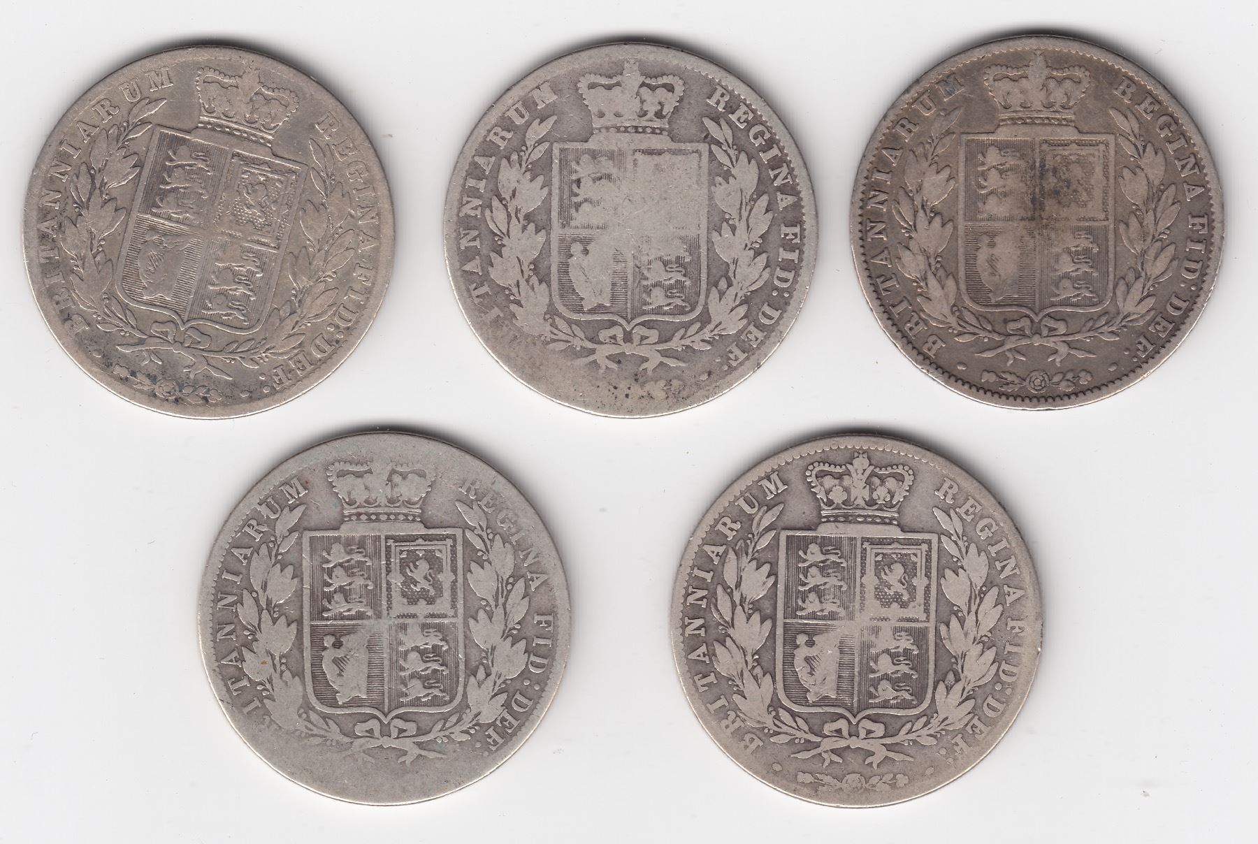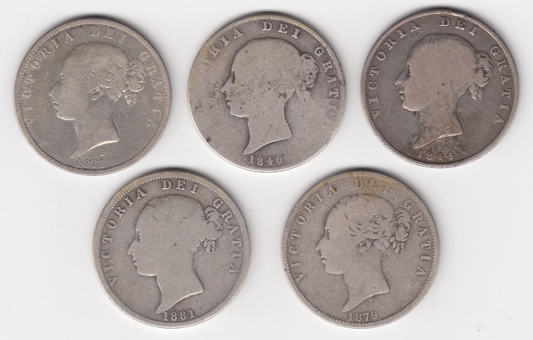 1/2 Crown: 1844, 1846, 1878, 1879, 1881. 5 Pcs.