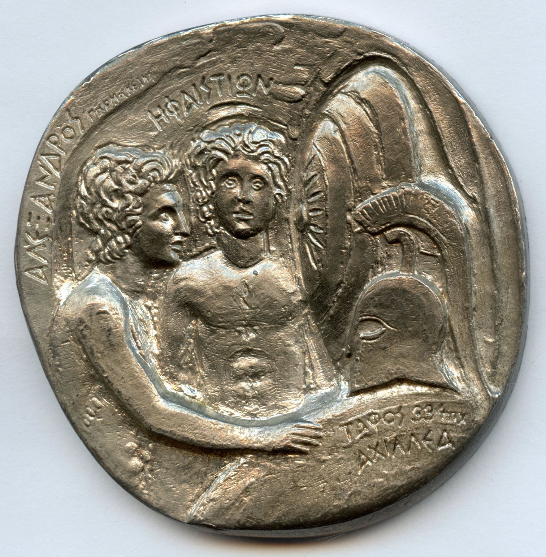 We have no idea what this medal is. It is silver plated copper-nickel, weighs 102.5 grams, a nice research project.