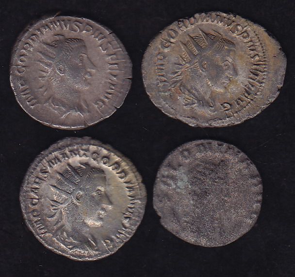 Group of 4 Roman Silver Coins. Gordian III, Antoniniani (3) and Salonina Denarius. F-VF. 4 Pcs.