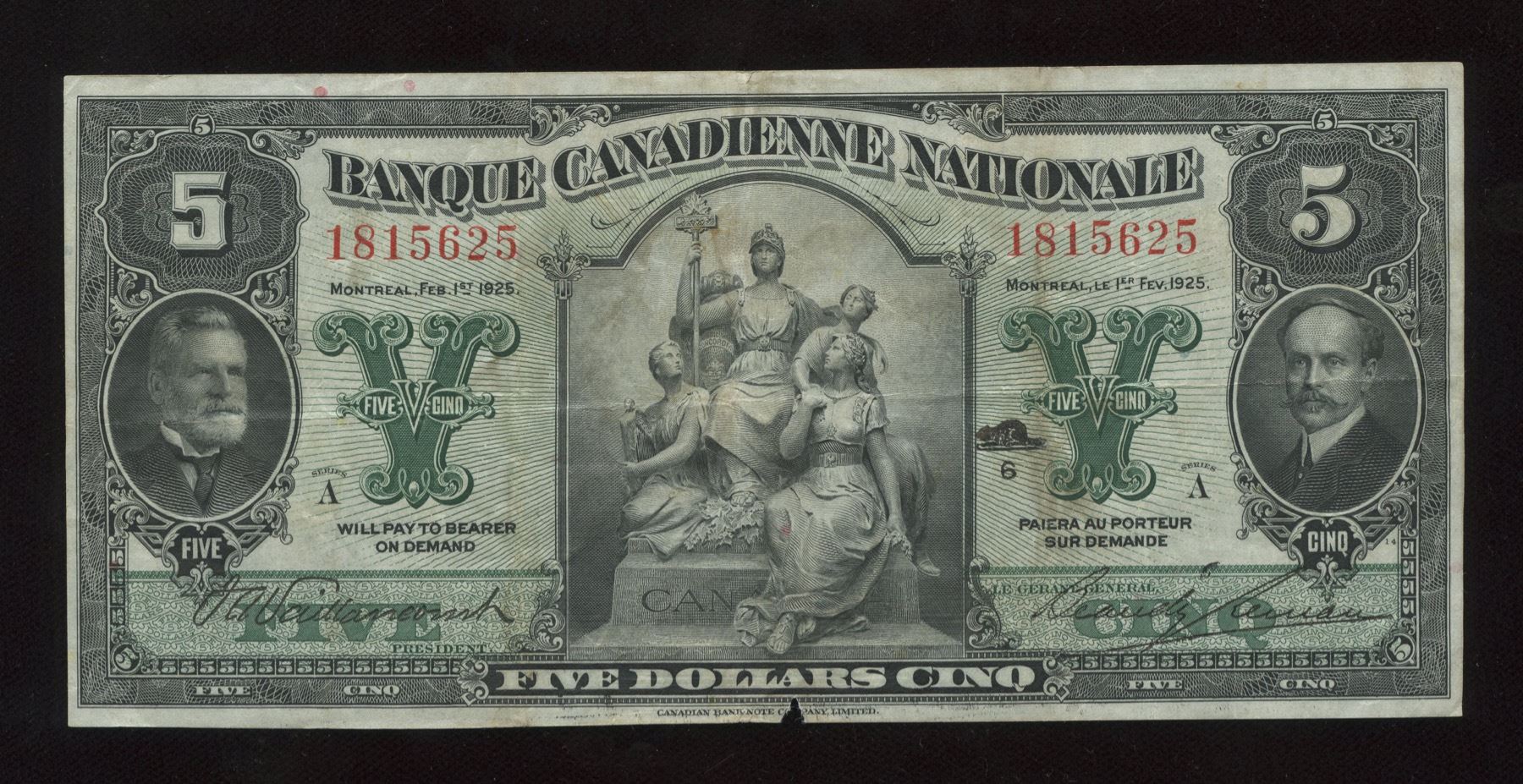 CH 85-10-02. VF, a small piece missing from bottom centre. S/N: 1815625.