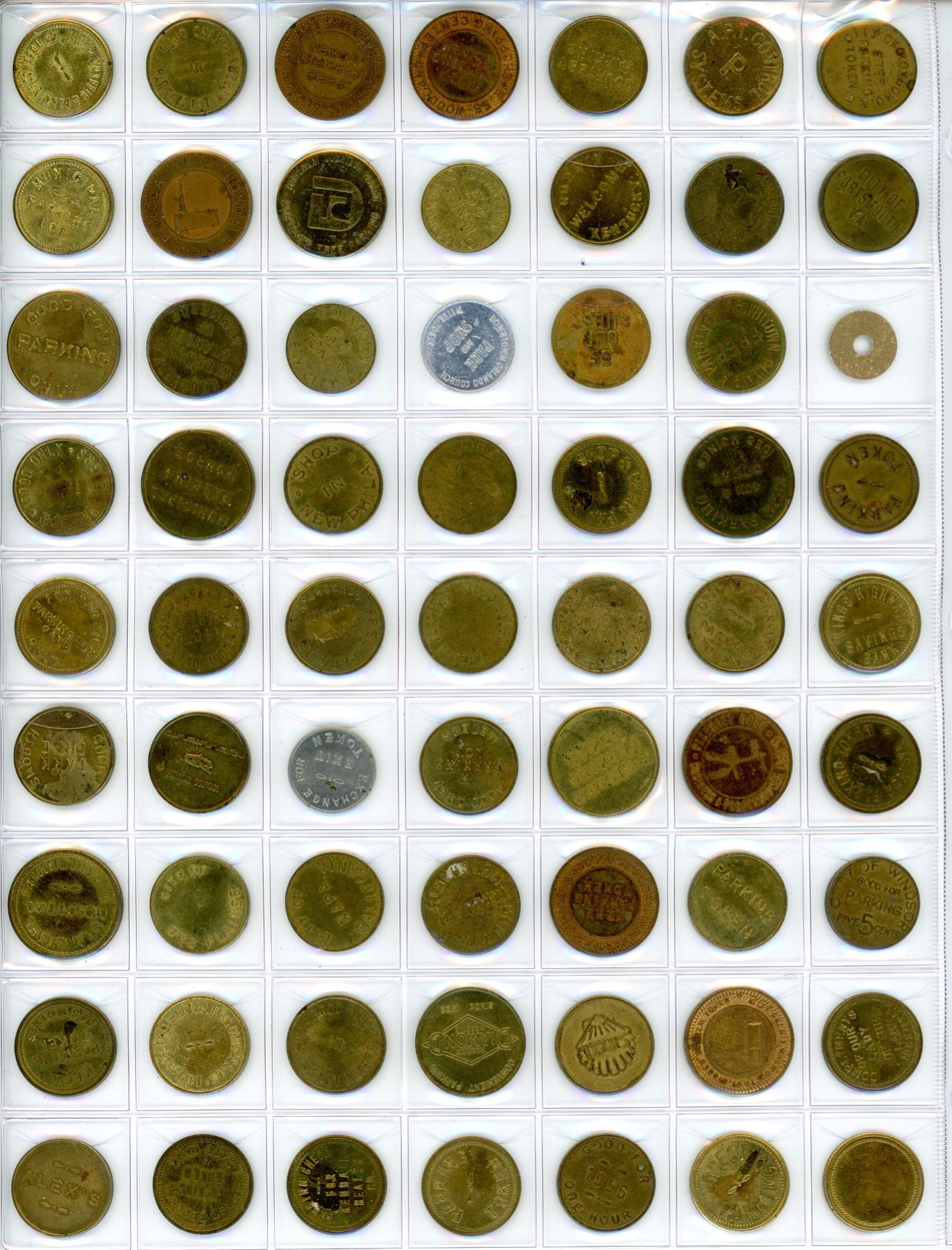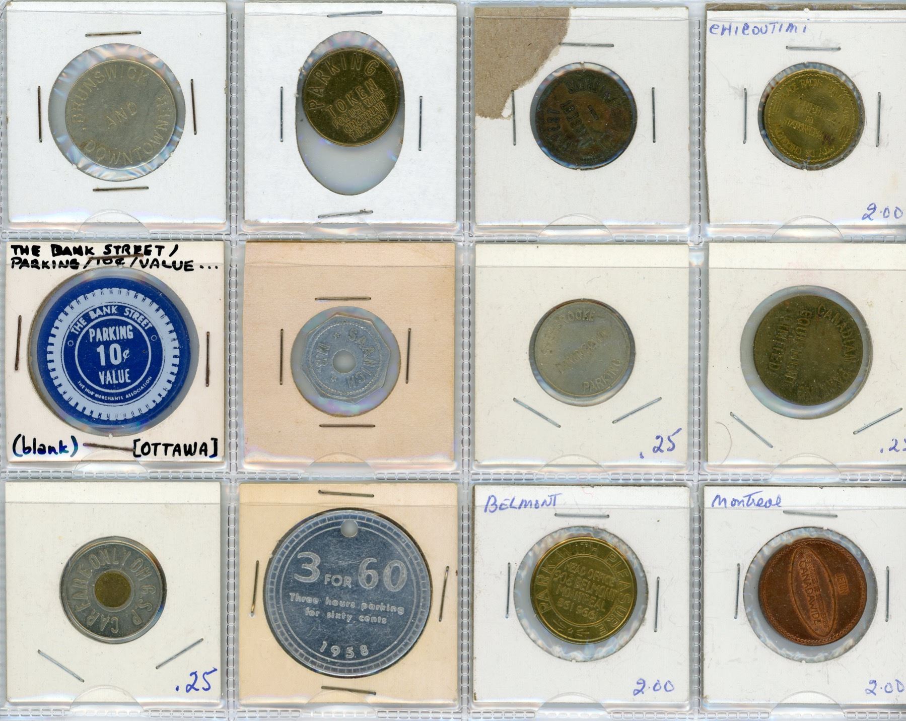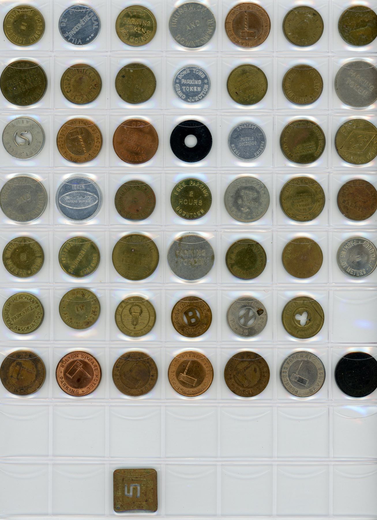 A nice assortment of mostly parking tokens covering Canada and the United States. Includes several Ottawa Police Dept tokens. 320 Pcs