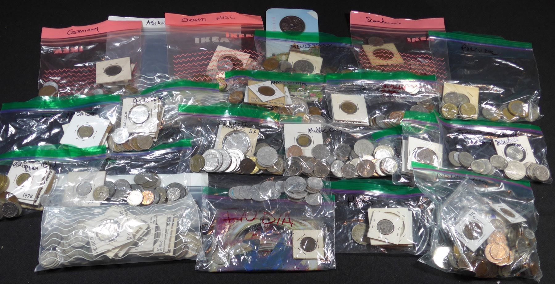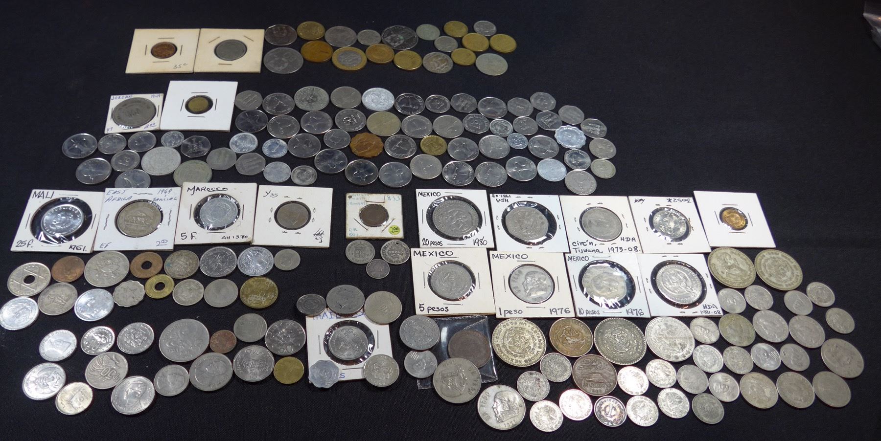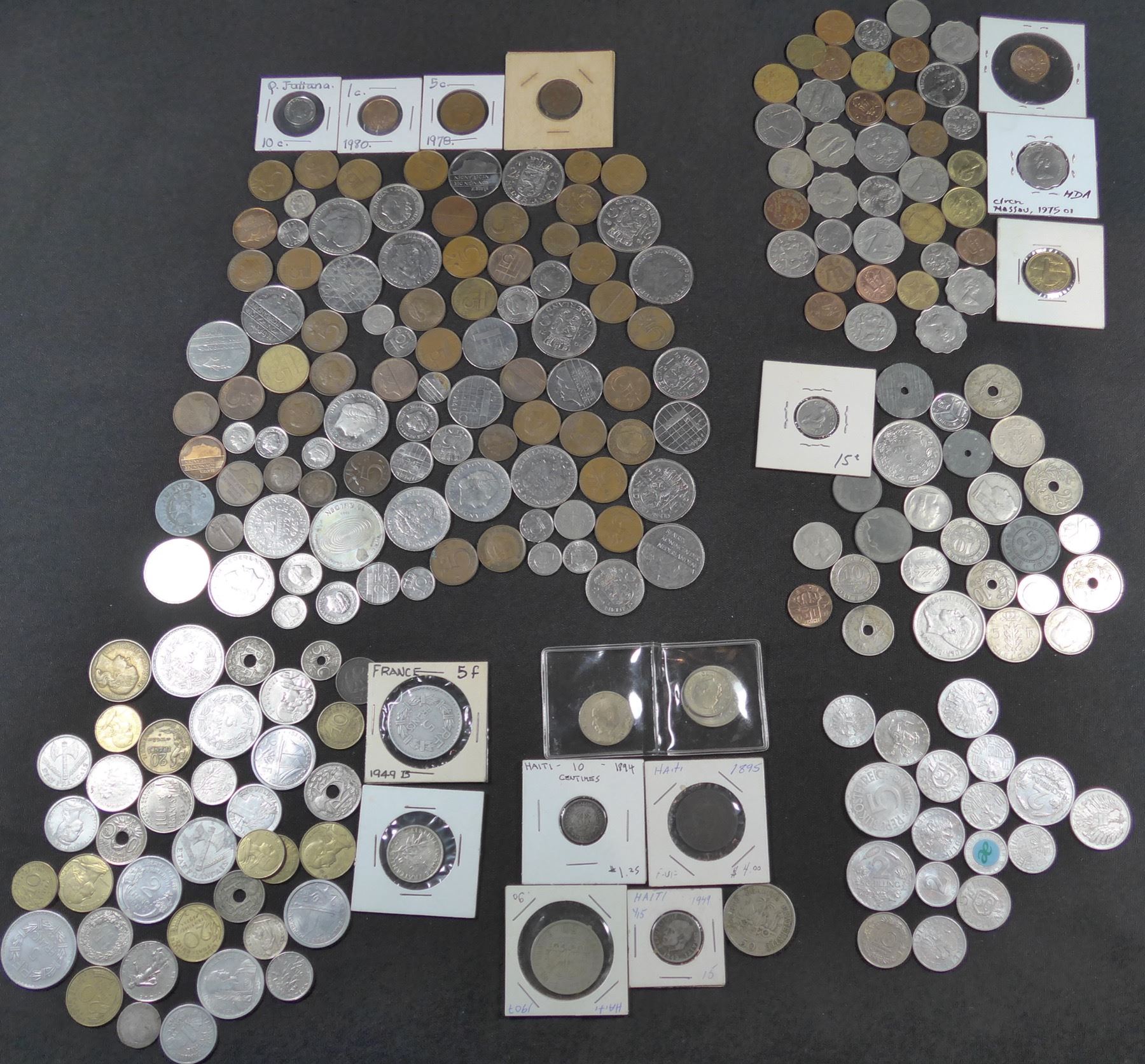 Box weights over 3 kilograms! Includes countries such as Austria, Bahamas, Belgium, France, Germany, Thailand, Netherlands, Haiti, India, Mexico, and Portugal. Examples from regions of Asia, Africa, Caribbean, South America, Middle East, Europe. A great unsearched box.