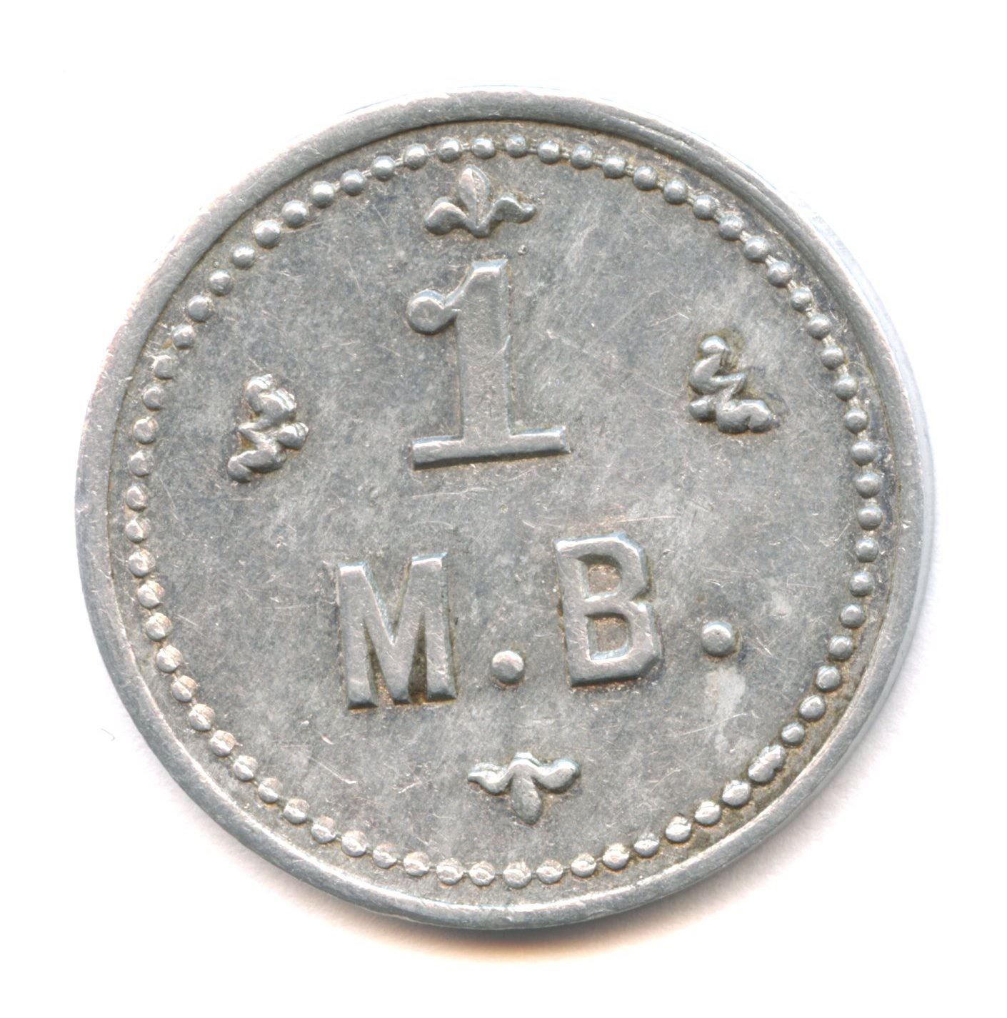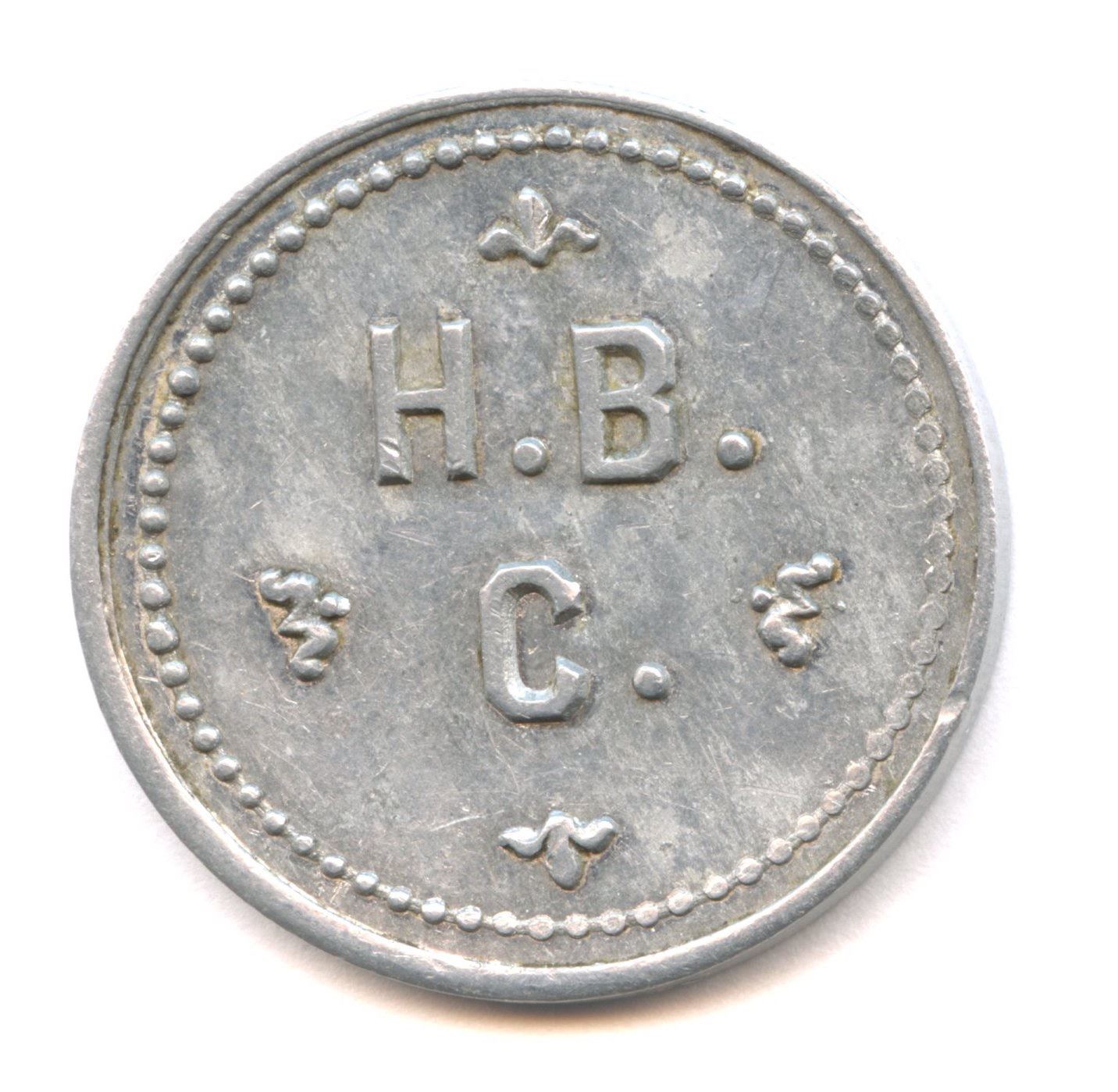 H.B./C. rev. 1/M.B. Alum. 25mm. Gingras 245. Ex:Lot 1807, Hoare Auctions #32 Feb. 1995. Ex: W. Baker, Roy Hughes, Len Buth. Very rare. VF.