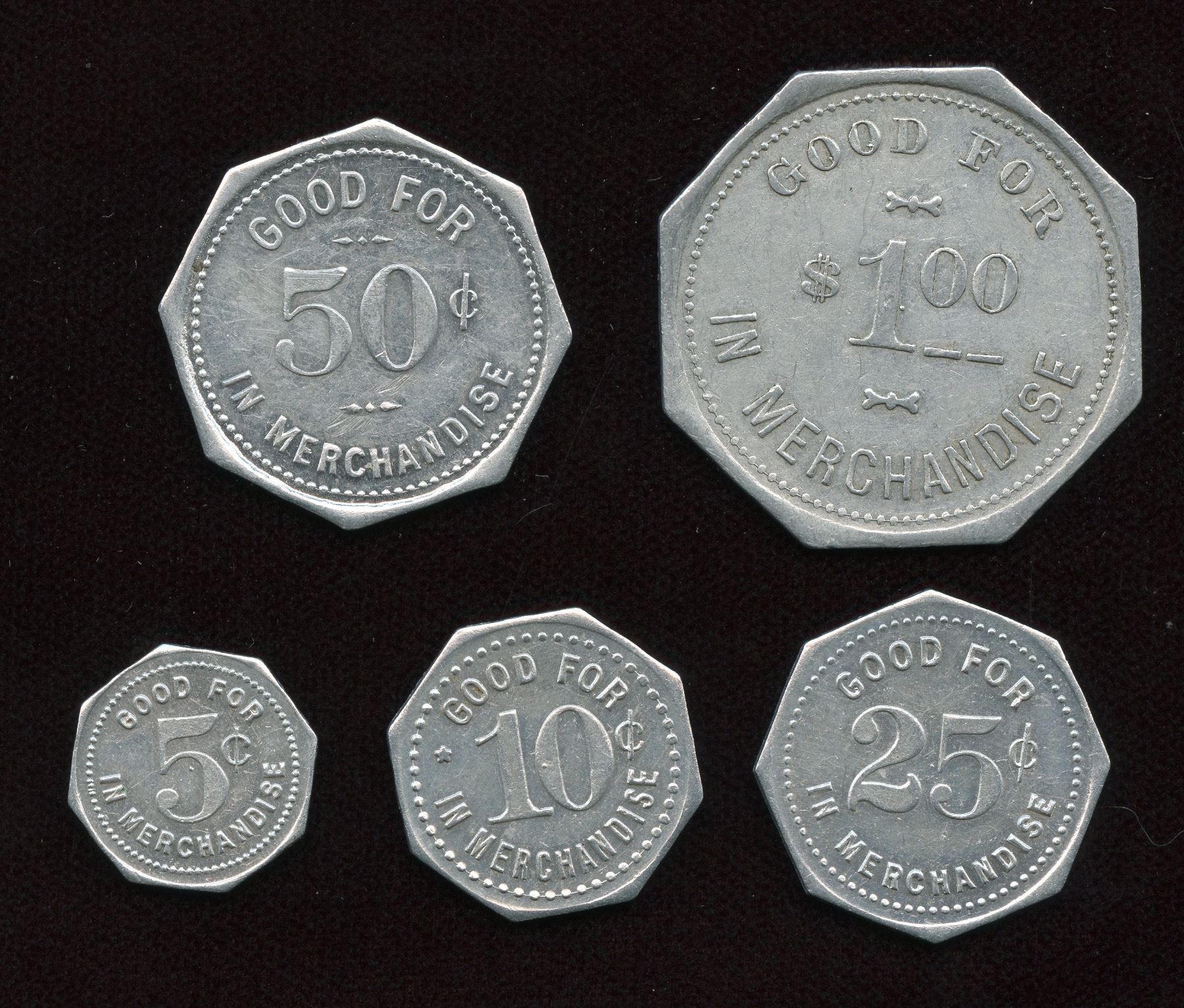 Good for 5c, 10c, 25c, 50c and $1.00. Alum. Post was opened in 1898. Gingras 280, a, b, c and d. Tannahill 7680d, e, f, g, and h. 5 pcs. EF+ - VF. Our last sale Toronto Coin Expo Fall Sale 2017, lot 1124 garnered a $1800 result with hammer.