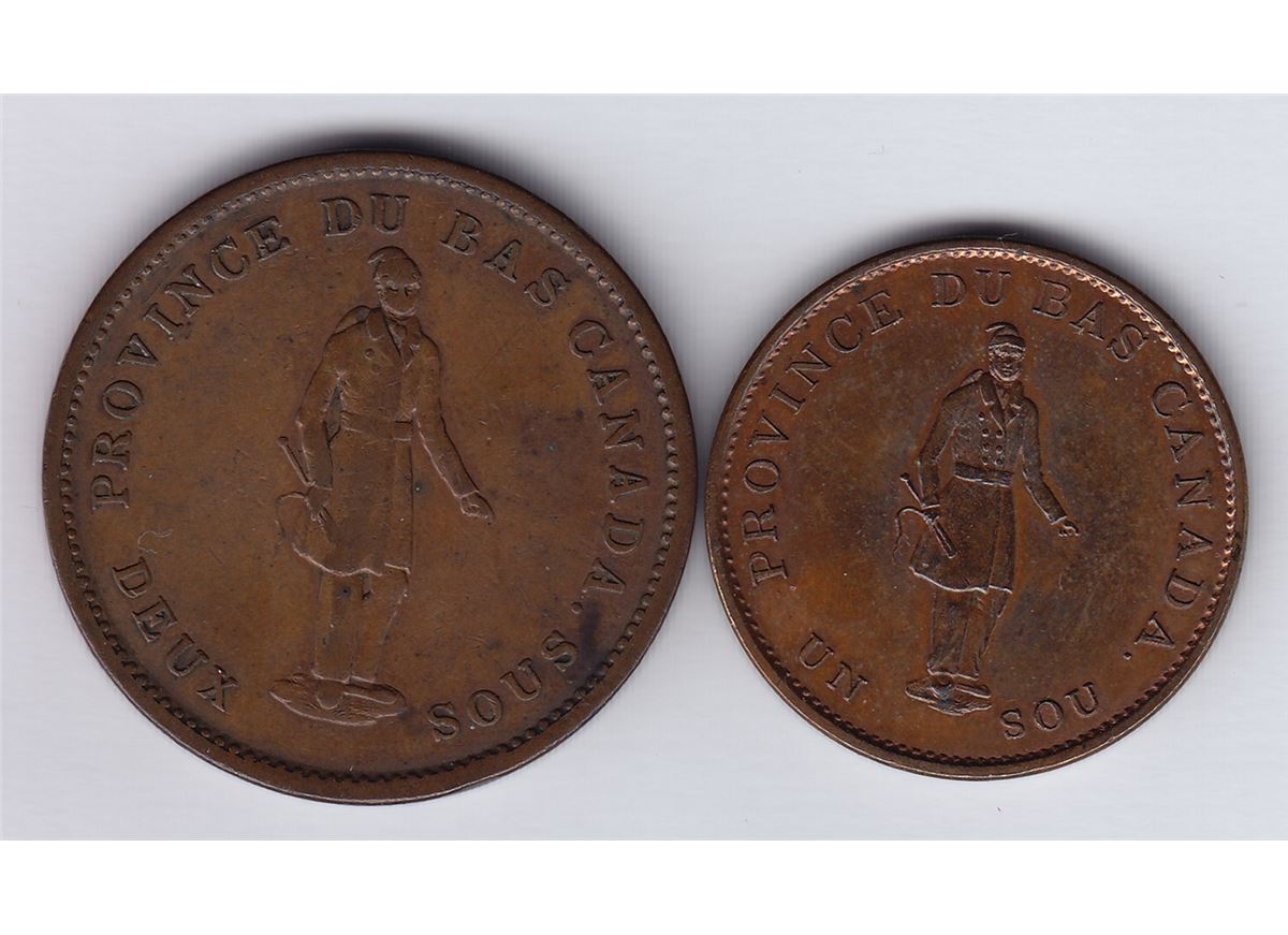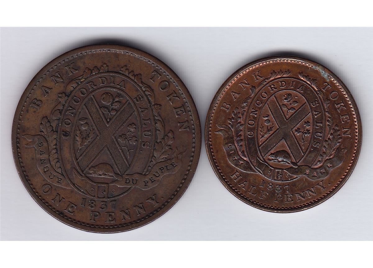 Habitant Token Lot Includes: BR 521, Banque du Peuple Penny, large ground, large period, Courteau 16a, CH LC-9C1, VF+, good surfaces, and an R.8. Ex Don Flick; City Bank Halfpenny, right seriph of V in line with top of I, CH LC-8A1, Unc. 2 Pcs.