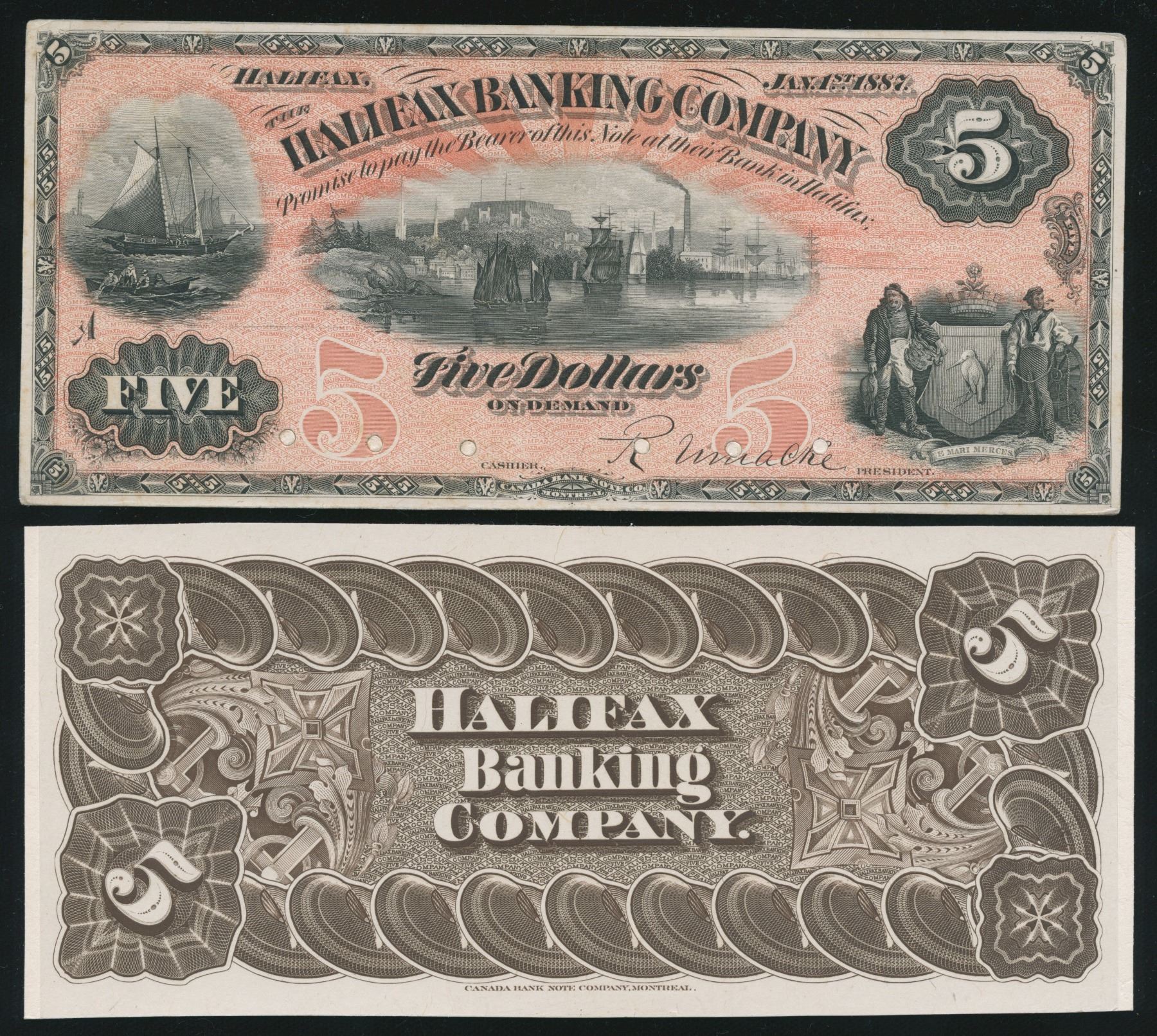 CH 335-22-02-04P. Unc's. Attractive Face & Back Proofs from this 19th century Halifax bank that represents a note that is nearly impossible to obtain in issued form.