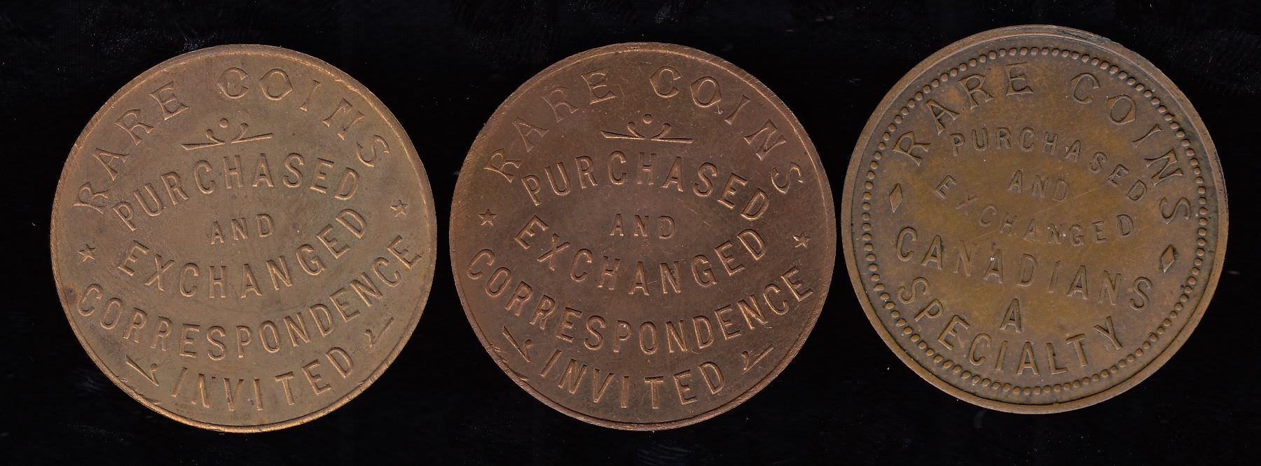 Jeremiah Gibbs (maple leaf), (2) copper (208 pcs issued); D.A. Woods,copper, 1904, 28 mm. 3 Pcs.