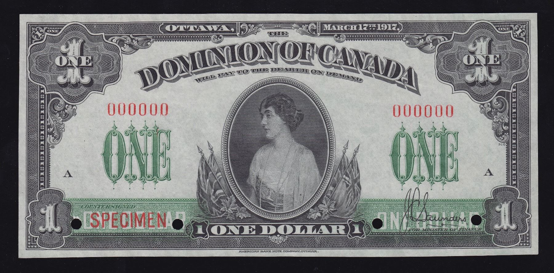 DC-23bS. Fresh AU/Unc. SPECIMEN at left signature panel, Saunders at right. Featuring Princess Patricia. S/N:000000/A.
