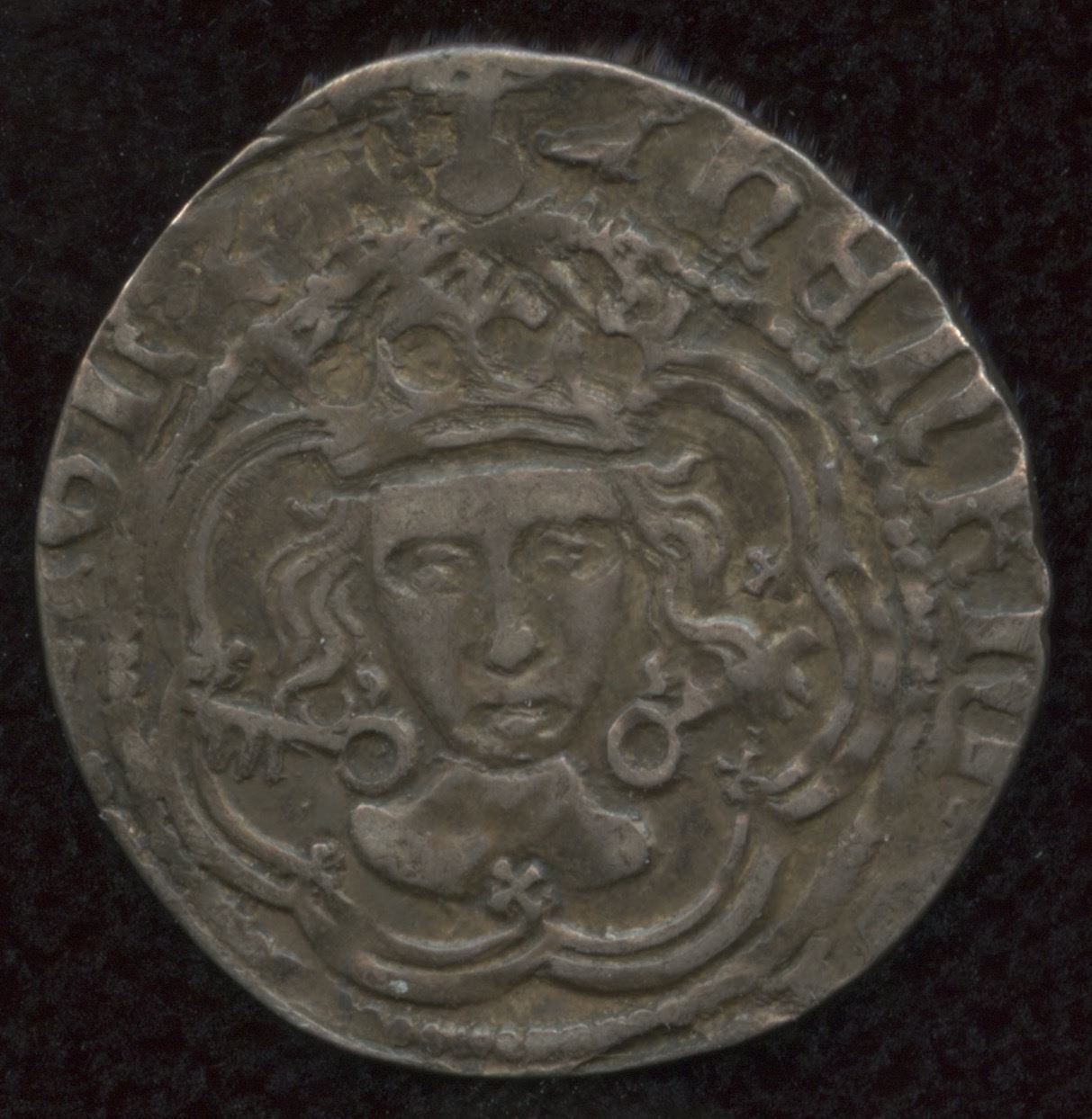 Henry VII. 1485-1509. AR Halfgroat (17mm, 1.28g). Facing bust issue. York mint; Thomas Savage, archbishop; im: martlet. Struck circa 1501-1507. Crowned facing bust in fleured tressure; keys flanking neck Long cross pattée; trefoils in quarters. North 1716; SCBC 2216. VF, toned.