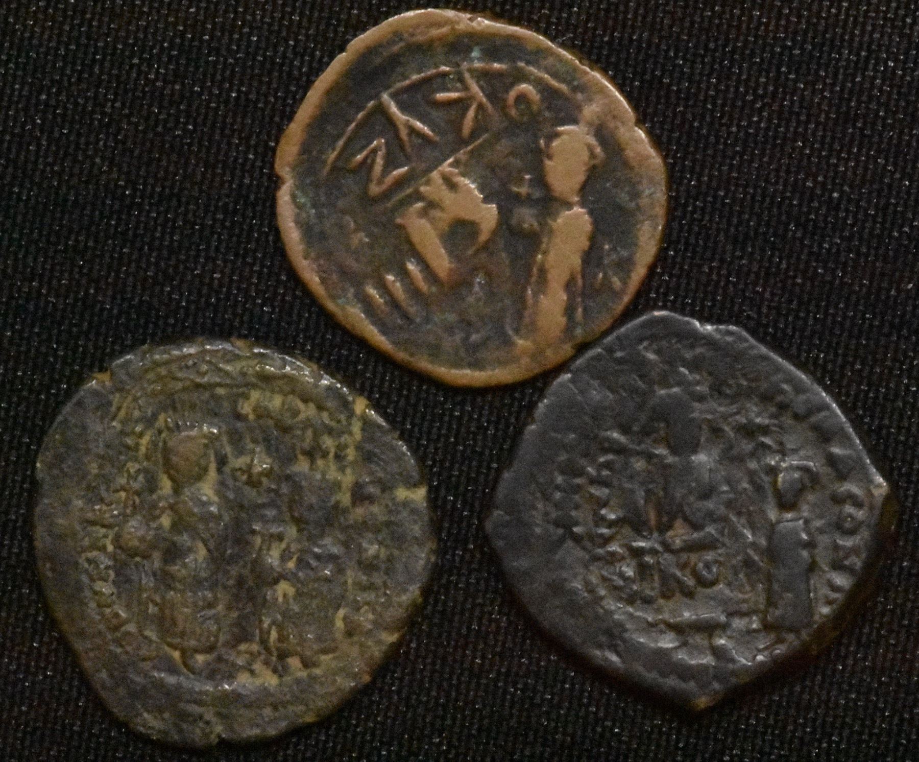 Heraclius, with Heraclius Constantine. 610-641 AD. - AE Follis. 40 Nummi. 11.15g. RY 3 (612/3) Rev. Large M, Christogram above, S.805. gF; 3/4 Follis, 8.16g, RY 21 (630/1) Rev. Large ?, S.812. F; Follis, 12.44g. RY 4 (613/4) Rev. Large M, S.834, F. 3 Pcs.