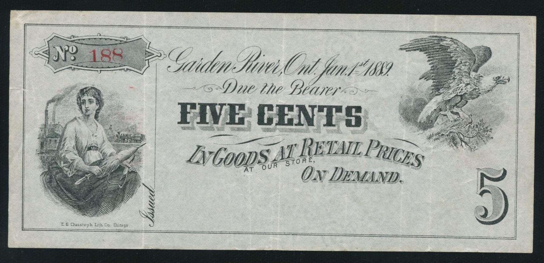 Manufacturers of Lumber Lath & Shingles and Dealers in General Merchandise. Five Cents in Goods at Retail Prices. Very Fine.