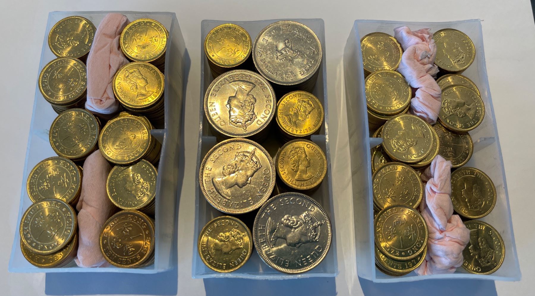 A great 4 lbs uncirculated collection of Hong Kong coins from the 1970's. 10 Cents and 1 Dollar.