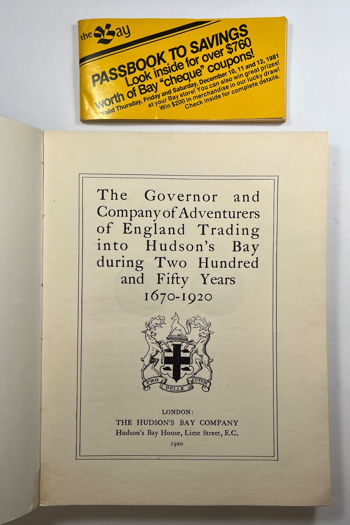A well illustrated history of this iconic company and its activities in Ruperts Land. It covers the period 1670-1920 in 130 pages with a super map attached at the end of the text. Also included is a presentation sheet from the company to A. H. Lamborn. The card cover are a little rough but don't detract from this wonderful book. As an aside, there is a passbook, dated 1981 with cheques allowing the customer monies for various store items. We recommend viewing of this item.