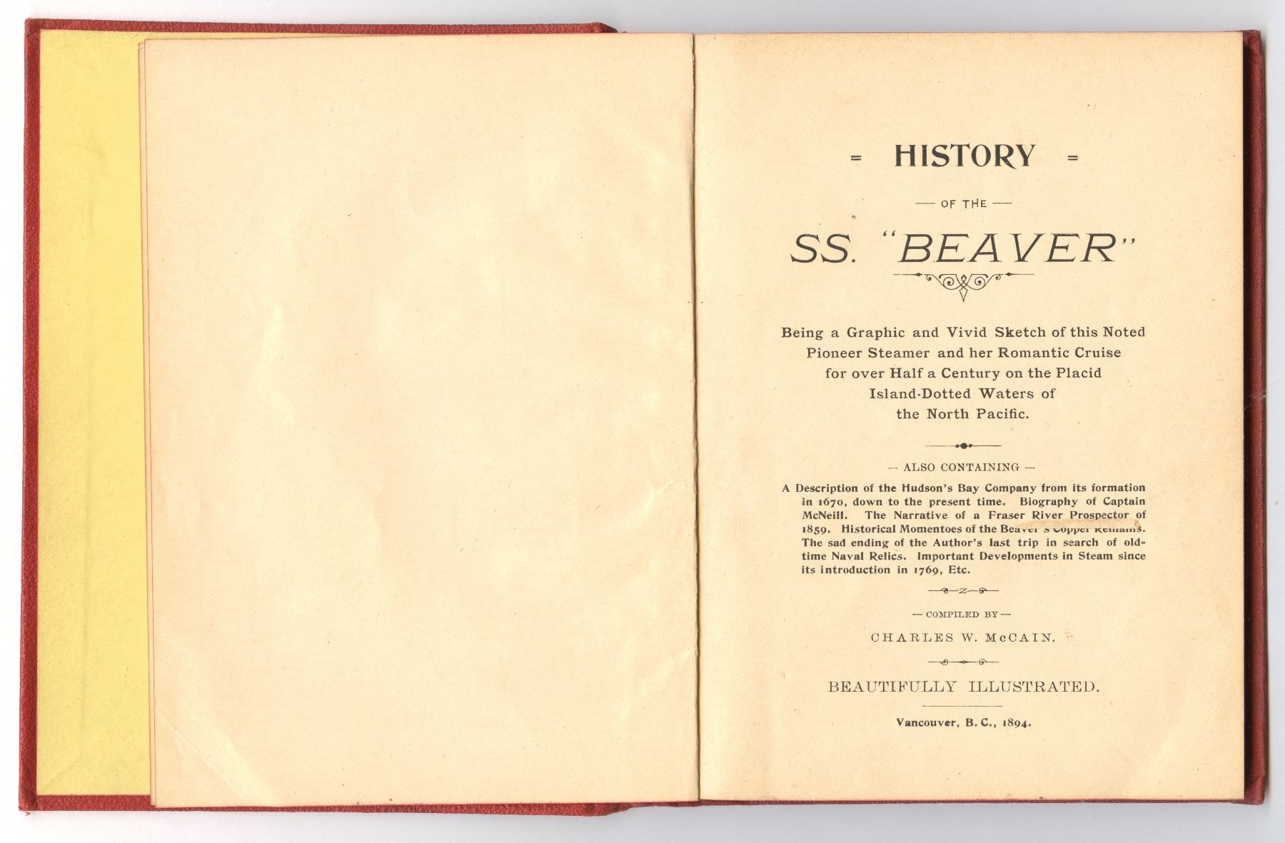 A rare book titled History of the Hudson's Bay Co's S.S. Beaver A Pioneer of the Seas, 100 pages, several photos, loose binding.