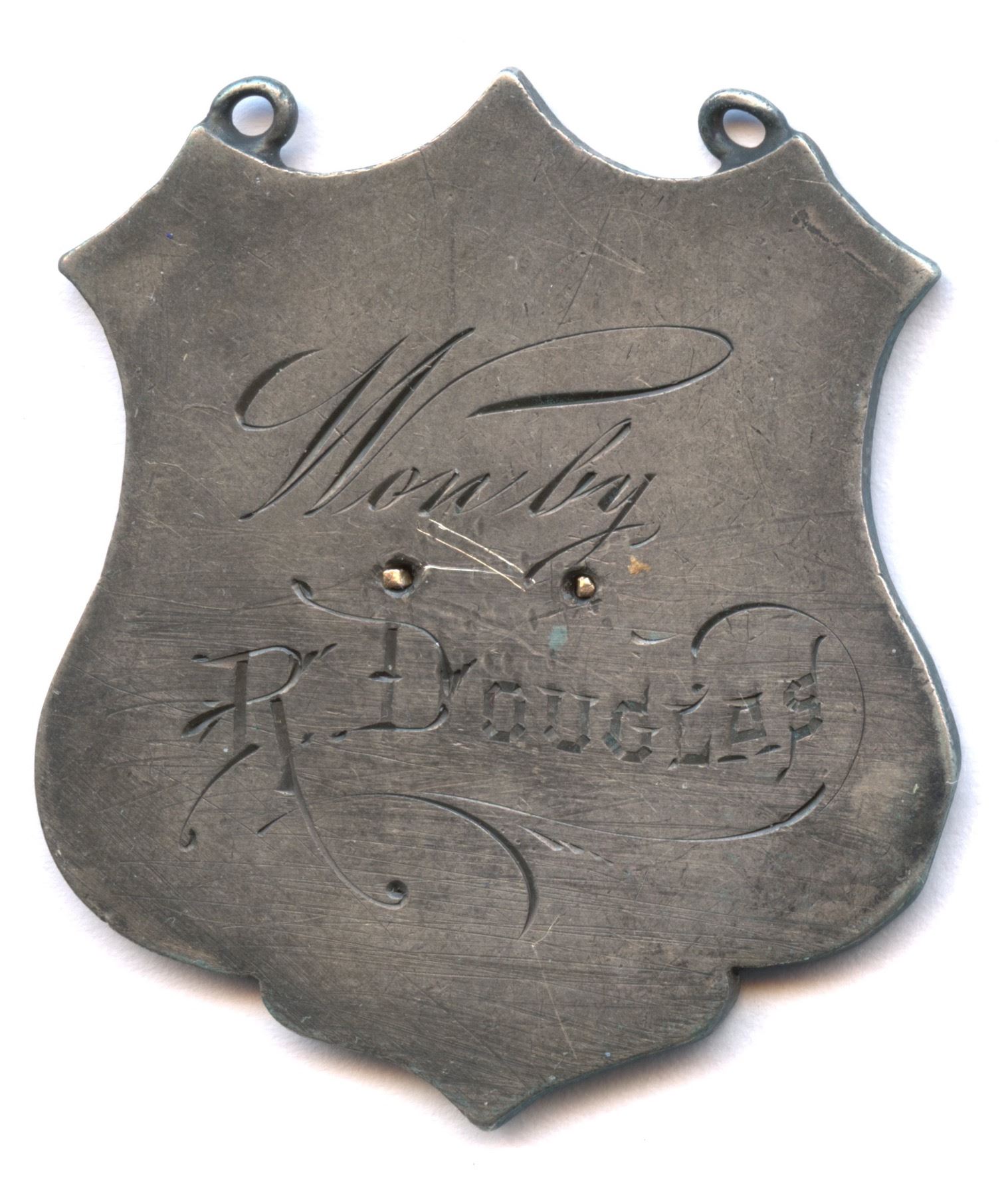 obv. gold HBC crest surrounded by Hudson's Bay Company Incorporated 1670; rev. Won by/ R. Douglas, sterling silver. 16.4gms. 35mm by 41mm.