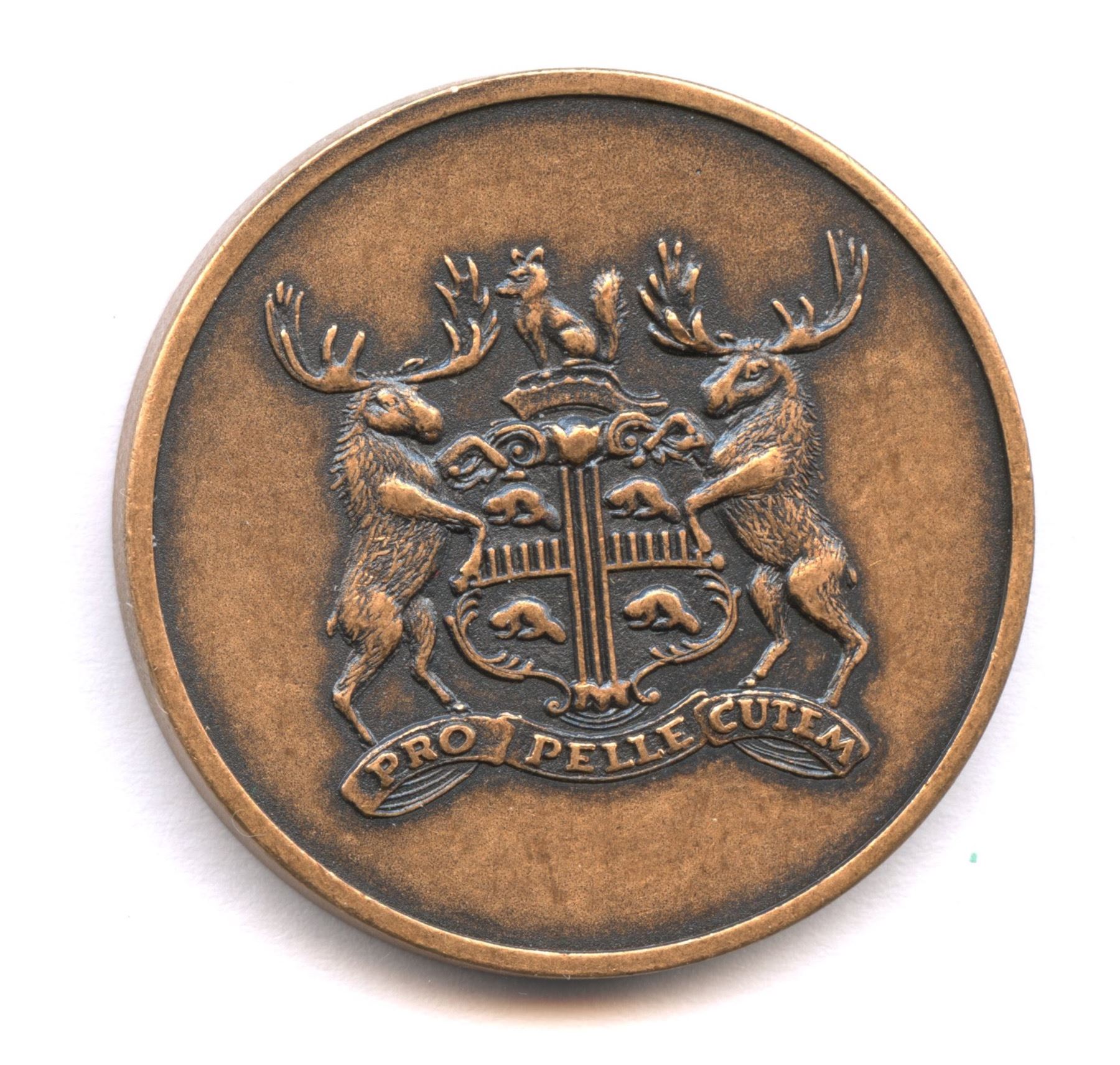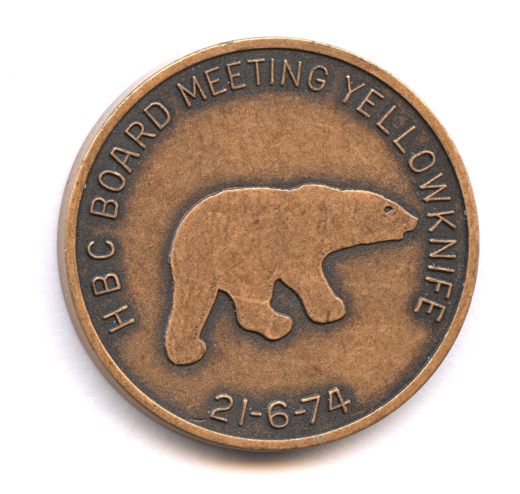 obv. Hudson's Bay Co. crest; rev. HBC Board Meeting Yellowknife, illus polar bear, bronze, 21-6-74. Ex Hoare auction.