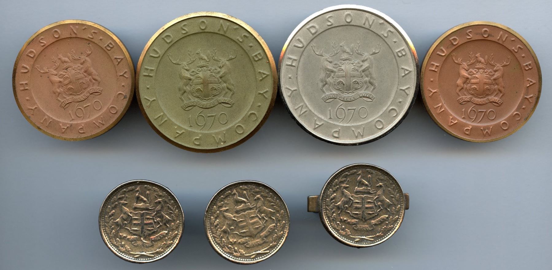 Includes: 4 assorted 1970 copper medals, other cool HBC souvenirs. 7 pcs.