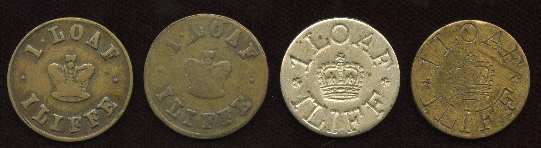 Br. 735, Astwood 1215e, Brass, 1 Loaf, centre dot on reverse, F; Br. 735; Astwood 1215e, Brass, 1 Loaf, VF; Br. 735A incuse; Astwood 1215i, WM, 1 Loaf, VF; Br. 735 incuse; Astwood 1215j, Brass, 1 Loaf, VF. 4 Pcs.