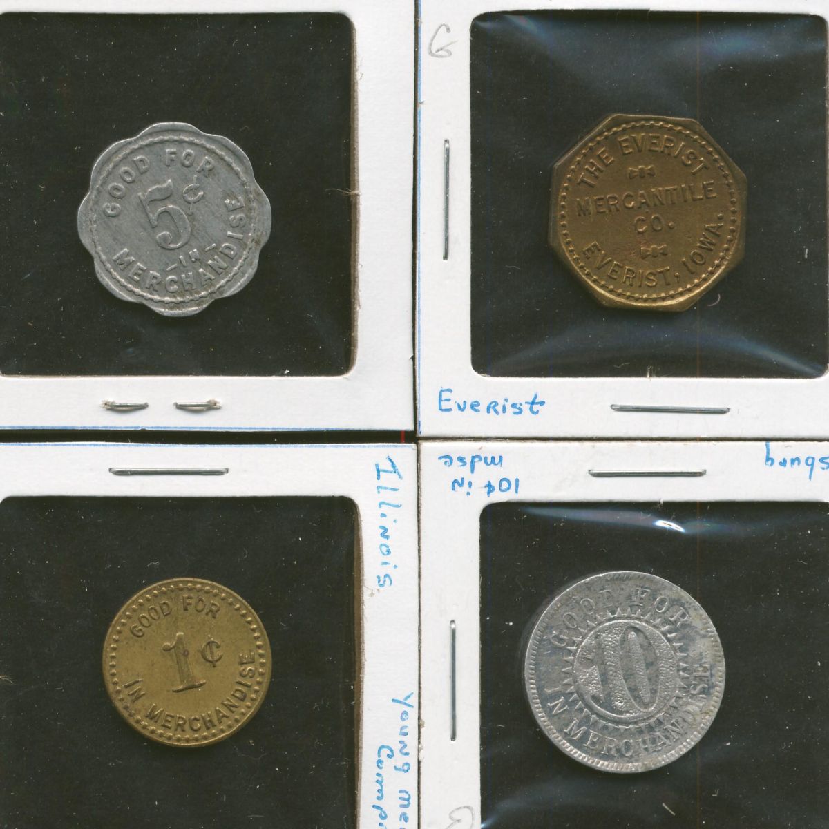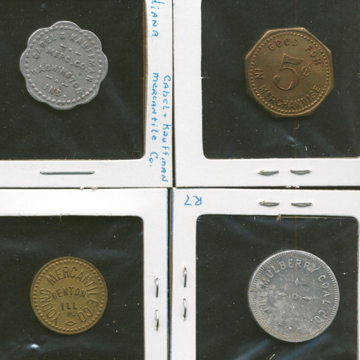 IL - Young Mercantile Co. 1 c. R1. IN - Kauffman Mercantile Co. 5c. R3. IA - Everest Mercantile Co. 5c. R7. KS - Mulberry Coal Co. 10c. R7.