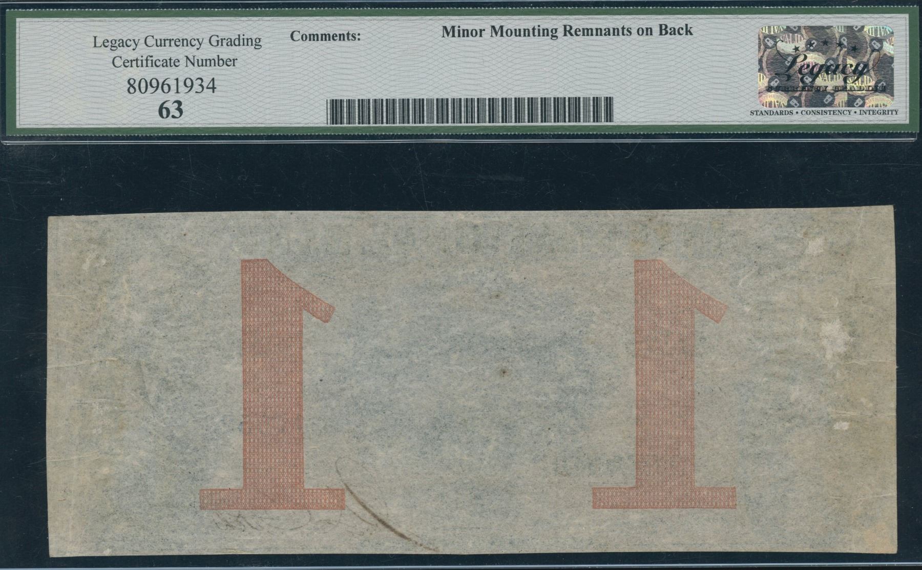 CH 380-10-10-04a. Legacy Choice New 63, minor mounting remnants on back. S/N:17552/A.