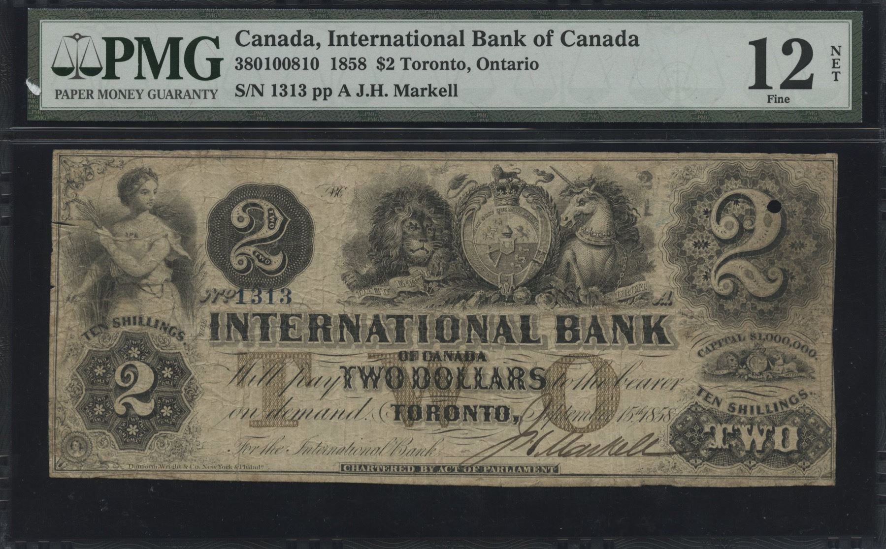 CH 380-10-08-10. PMG 12 Fine, tear at left. S/N:1313.