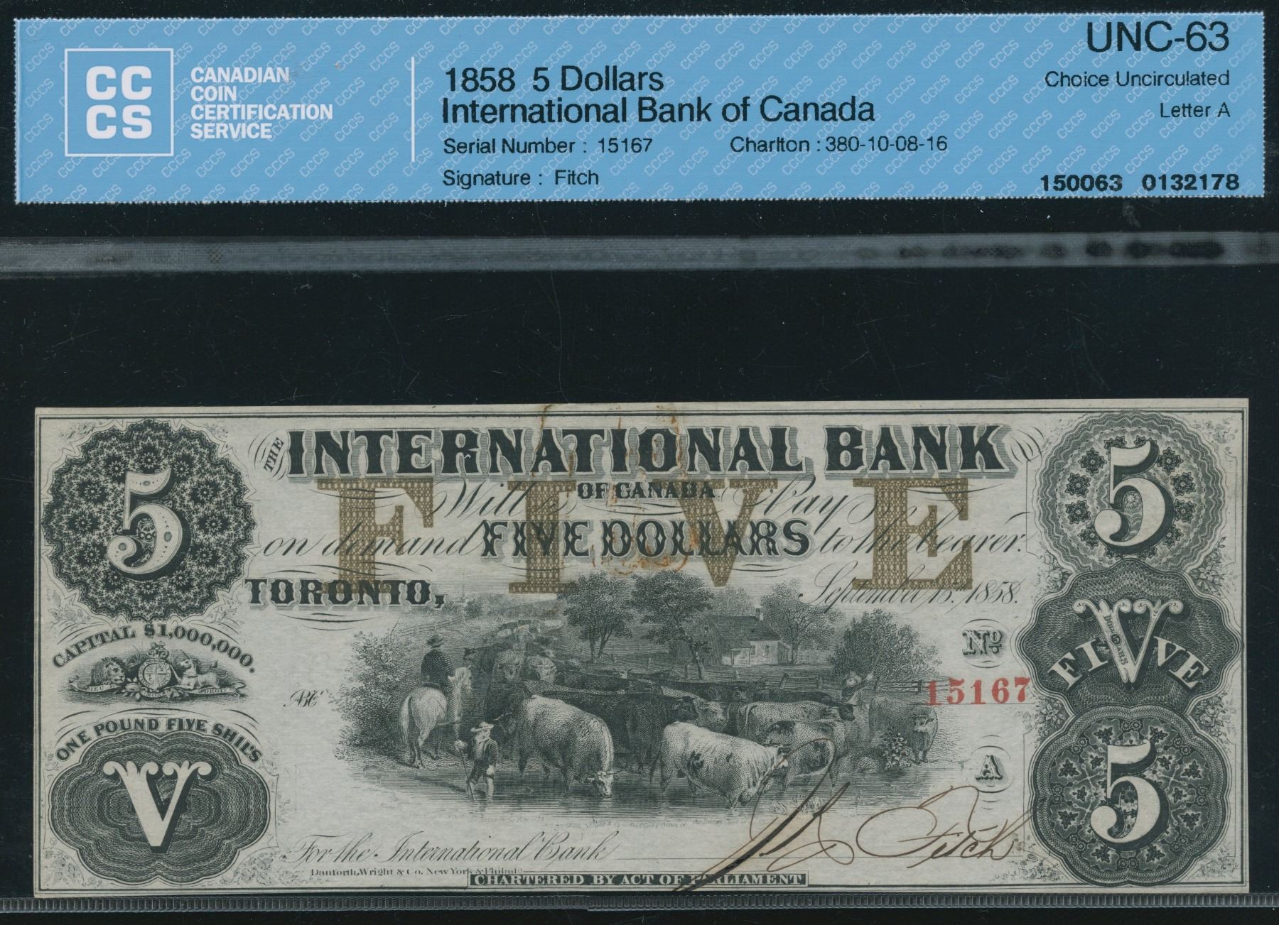 CH 380-10-08-16. CCCS UNC-63, red serial numbers. S/N:15167/A.