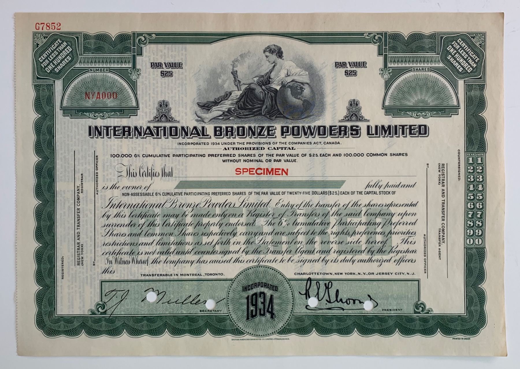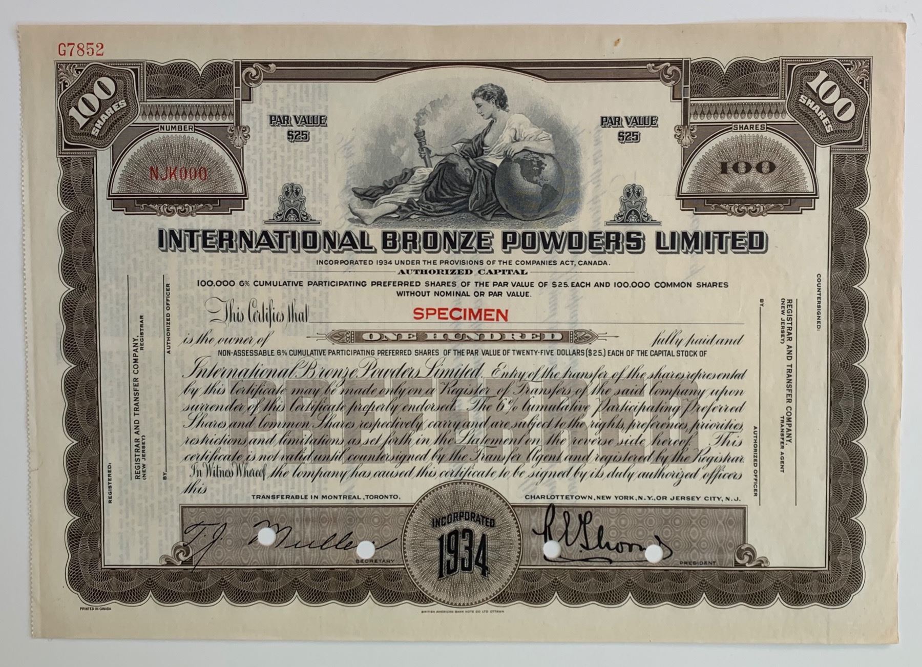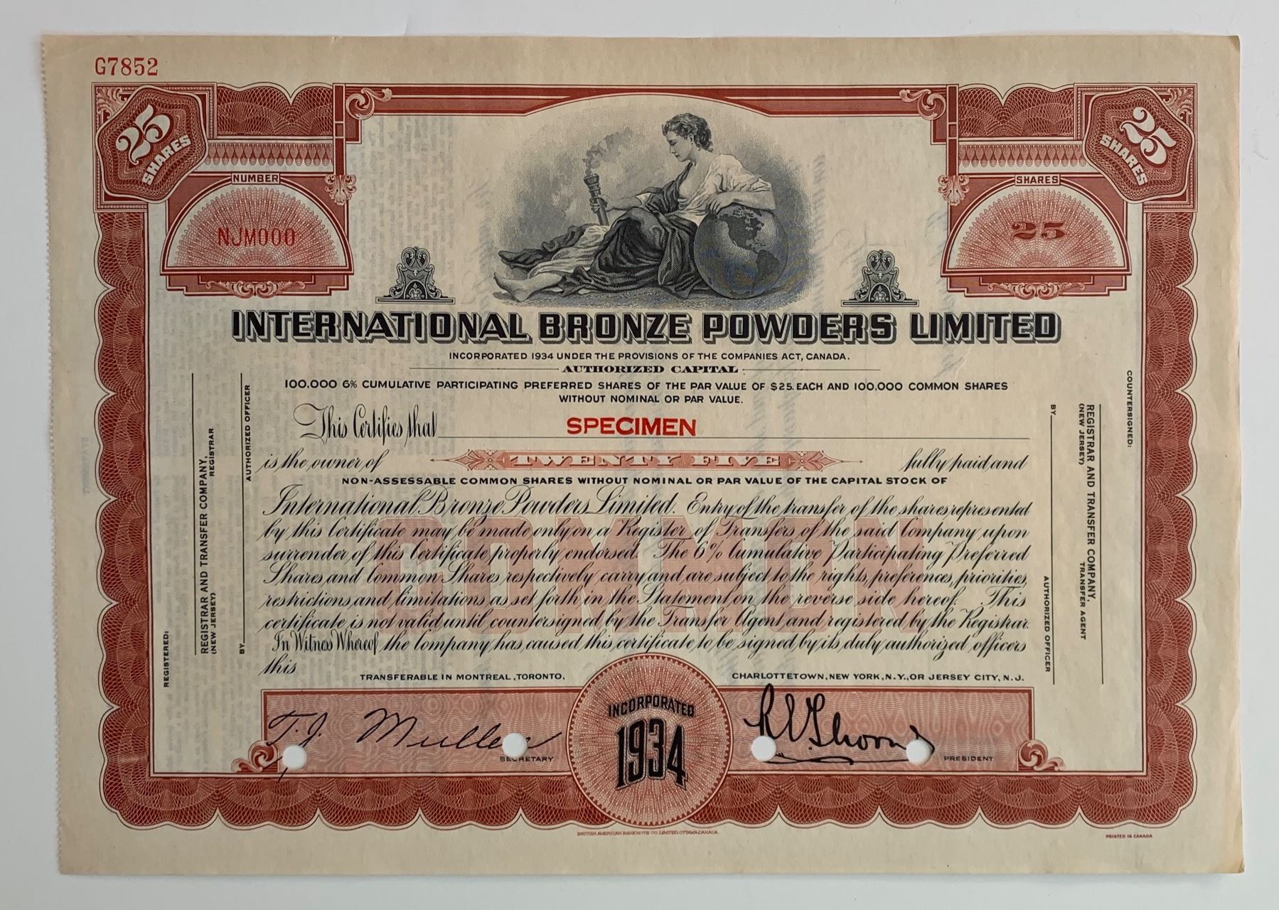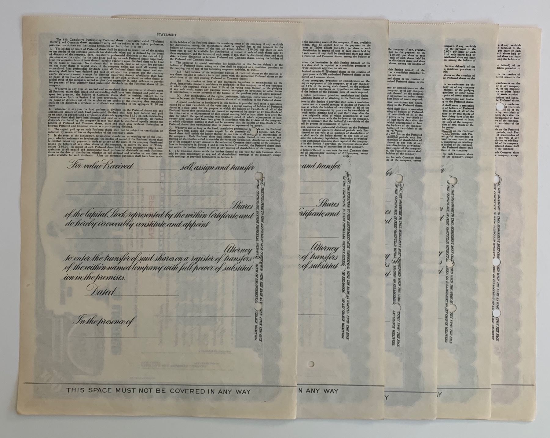 Includes a lot of 5 pieces, incorporated (1934) and transferable in Montreal, Toronto and the USA.