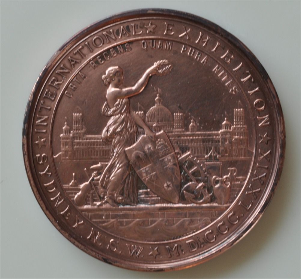 International Exhibition Sydney, N.S.W. - M.D. CCC. LXXIX/CROSBIE & Co/FOURTH AWARD. Bronze, 77mm, 2