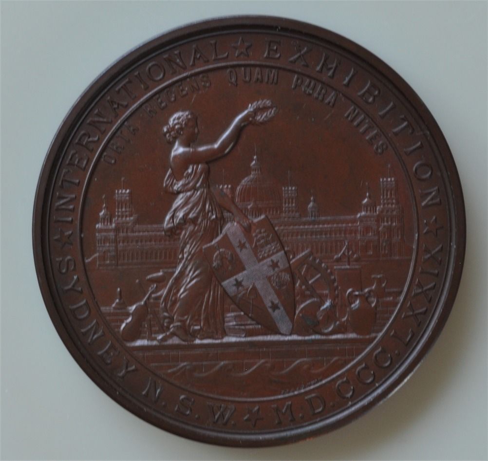International Exhibition Sydney, N.S.W. - M.D. CCC. LXXIX/MRS. M. A. WILSON/FOR SERVICES. Bronze, 75mm, 220g, Unc.