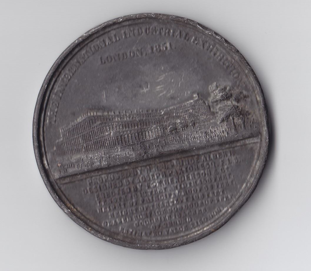 International Industrial Exhibition Medal - PRINCE-ALBERT-INTERNATIONAL-INDUSTRIAL-EXHIBITION-WHITE-METAL-MEDAL-1851; Diameter of 51mm. Ref 415C2.