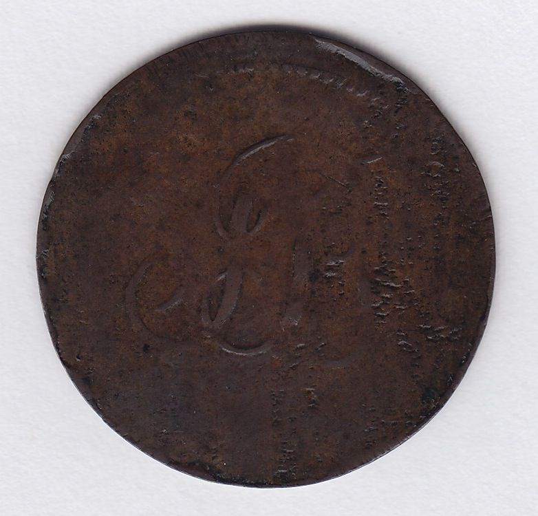 JB / Warehouse - Courteau 360, CH BL-31, copper, about 45 degrees off a straight upset reverse, a flat brown planchet with porosity on both sides as is usually the case, but certainly a Fine, scarce, and belonging to two different series, the Blacksmith and the Nova Scotia token issues. Ex: Léo Meloche Collection; Warren Baker.