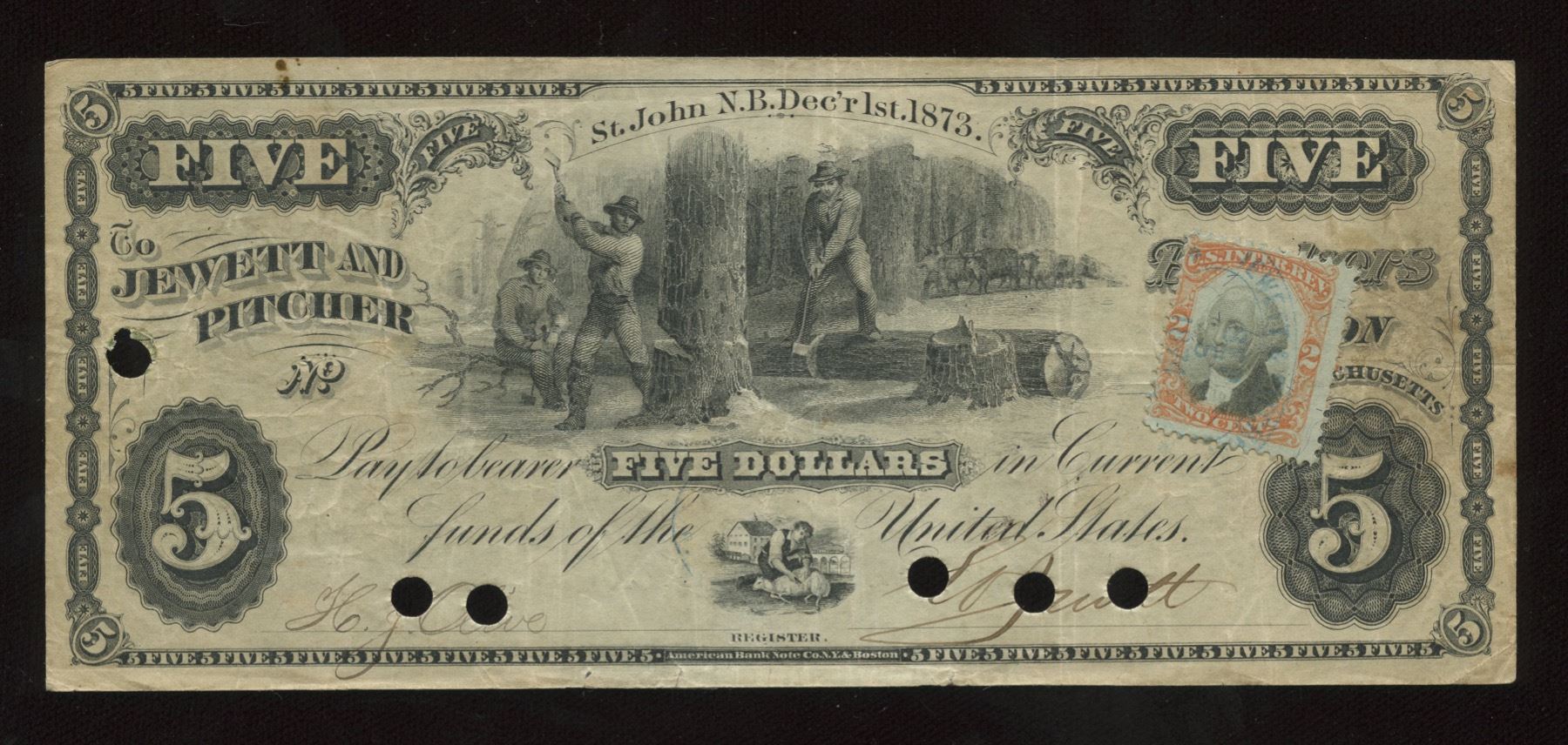 NB15-10-06. Fine+, tape repairs at bottom and a stamp on front. Punch cancelled.
